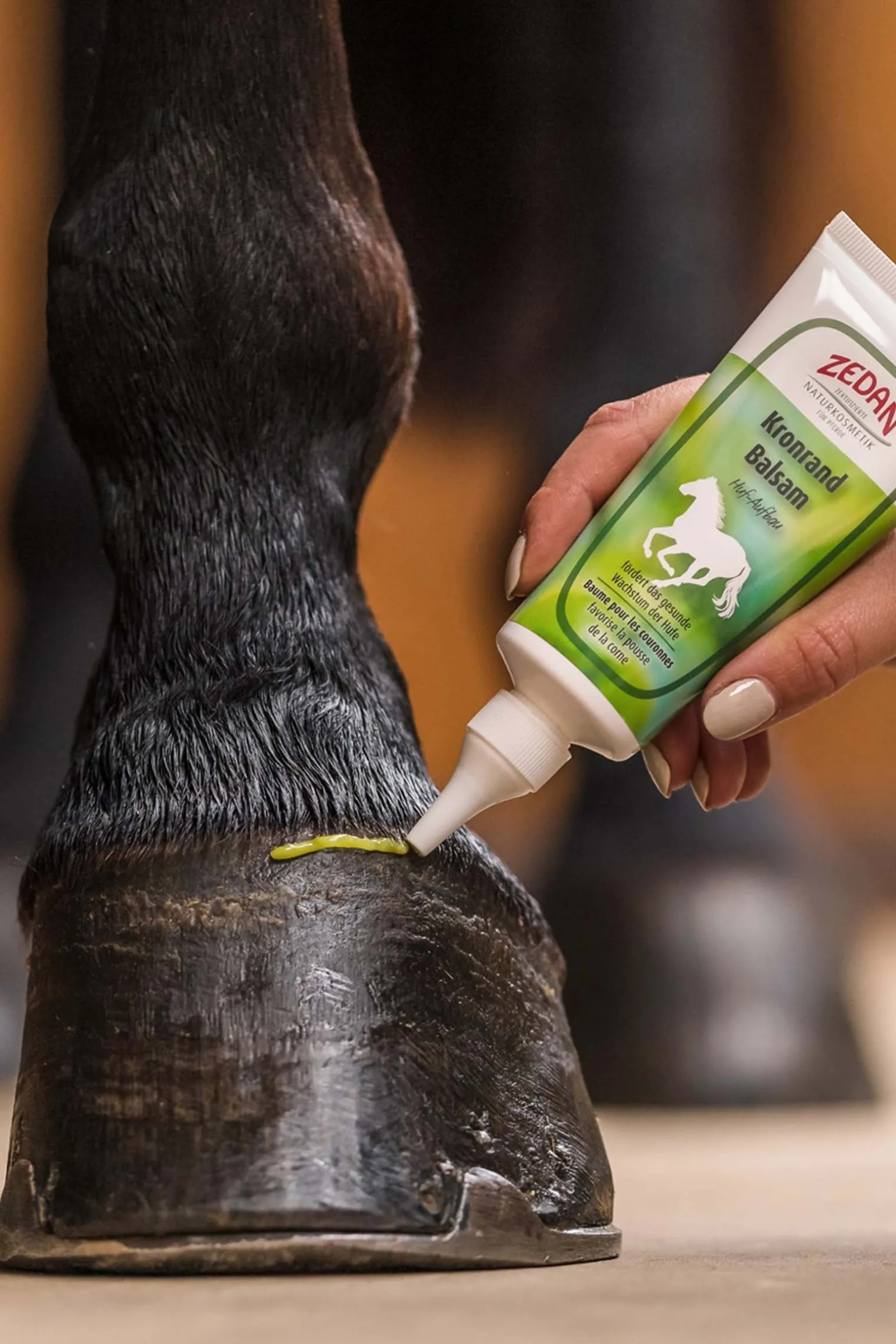 Zedan Kronrand Balsam enthält natürliche Inhaltsstoffe und wertvolle Öle, die das Wachstum eines gesunden Hufes anregen und unterstützen.
