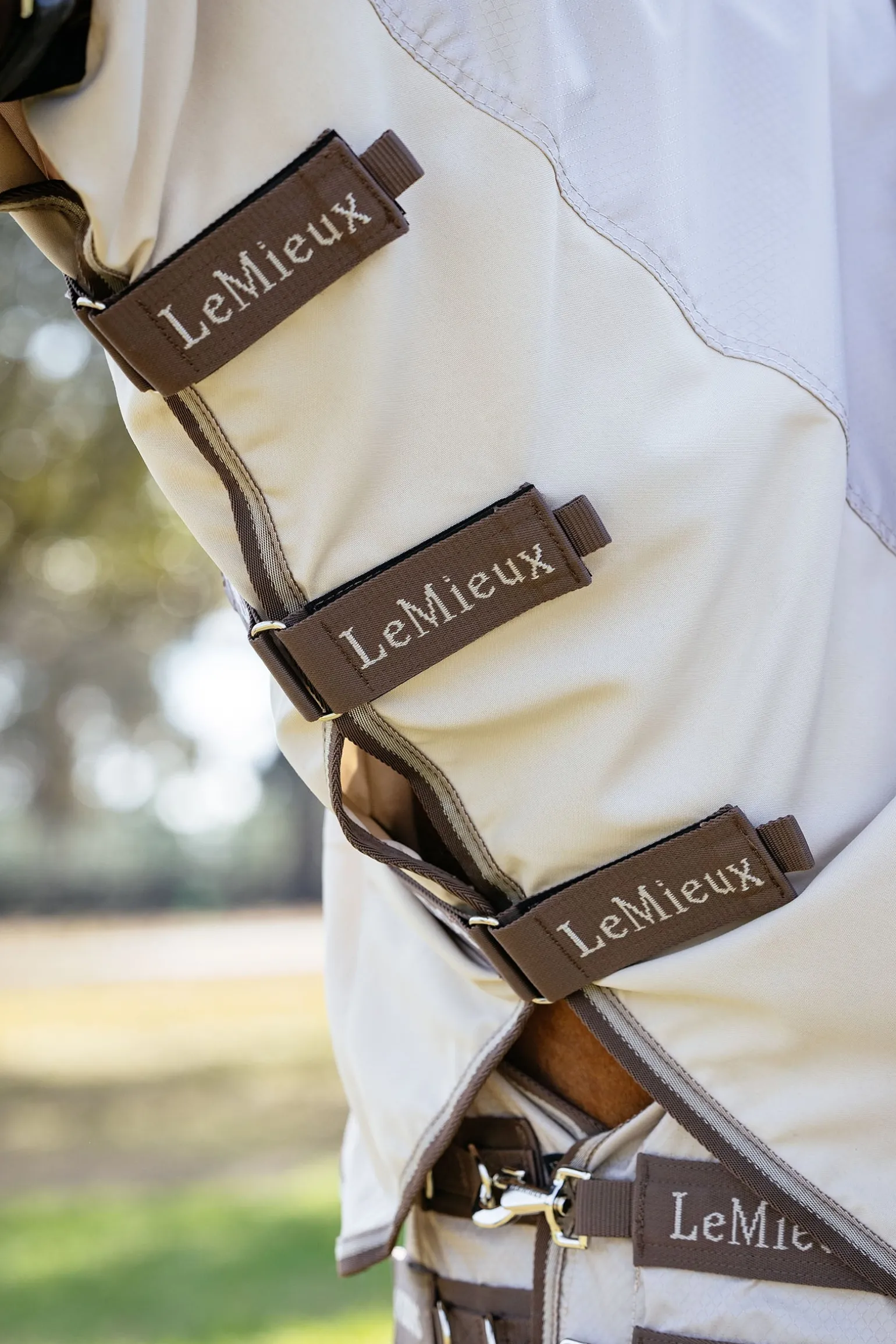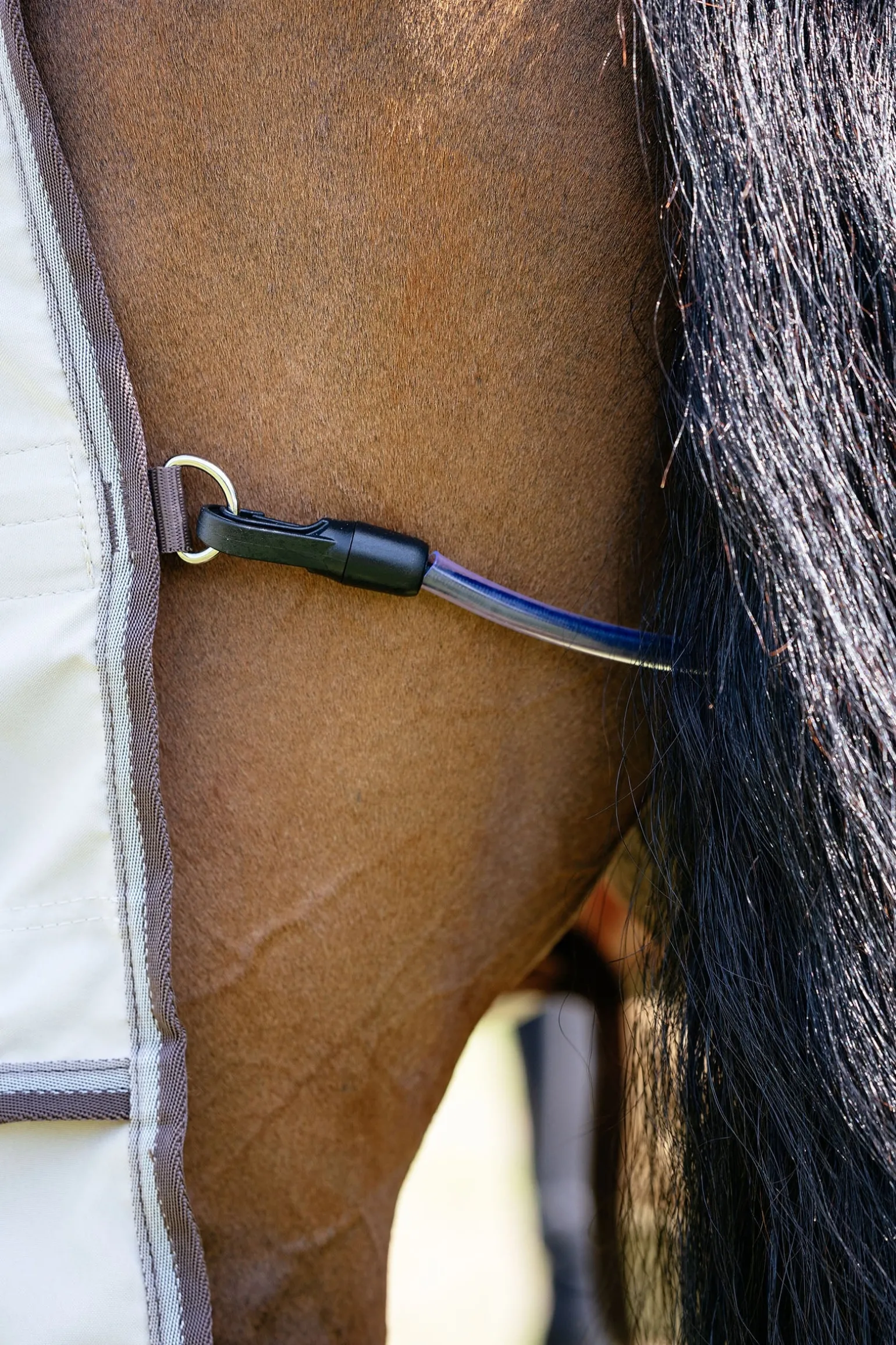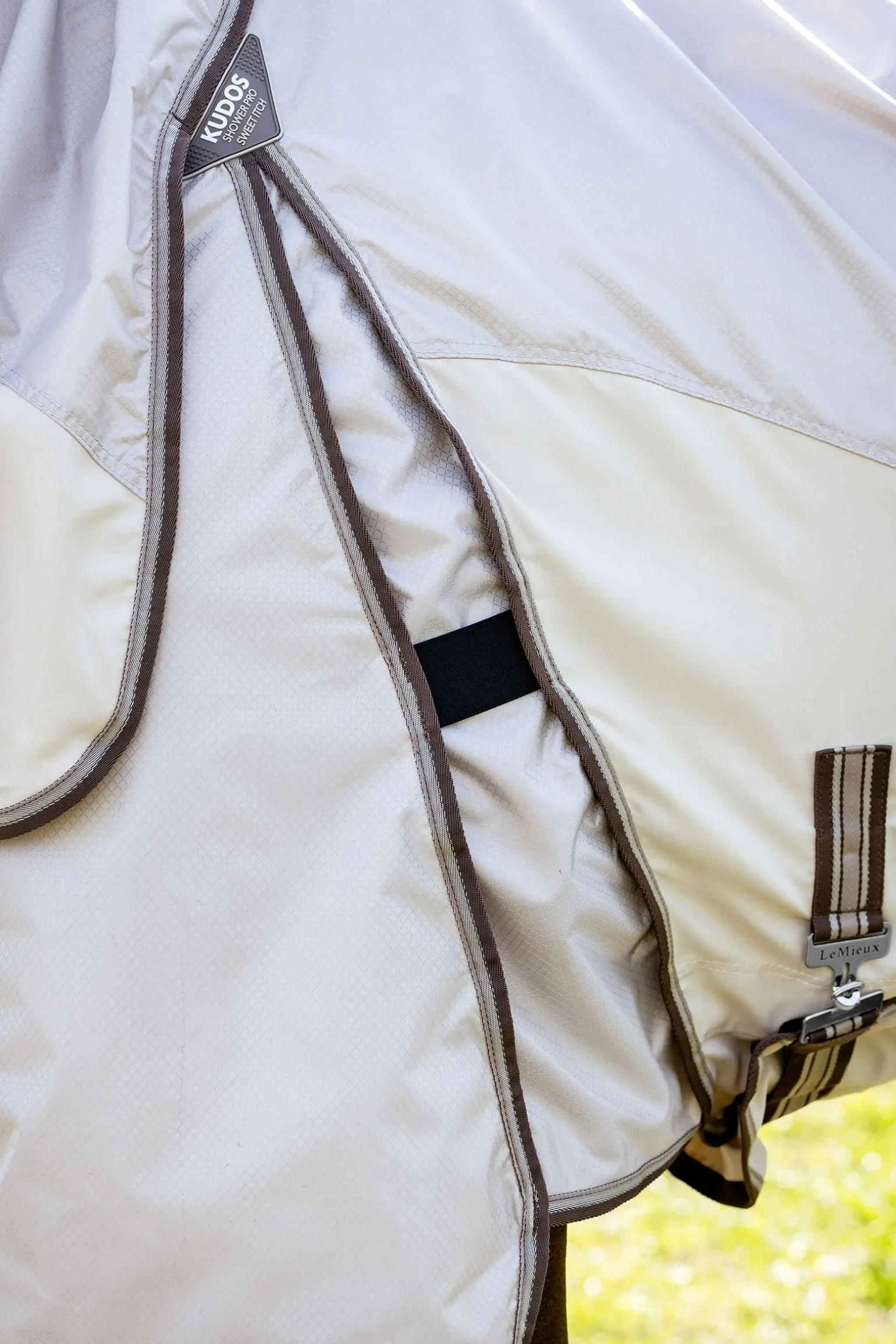 Essentieller Schutz vor juckreizverursachenden Fliegen und stechenden Insekten bei nassem Wetter. Diese Spezialdecke besteht aus robustem 400 Denier Diamond Ripstop-Gewebe. 3D-Mesh-Polsterung am Widerrist sorgt für Komfort und Atmungsaktivität, während das teilweise eingearbeitete antistatische und antibakterielle Futter Scheuern verhindert und den Fellglanz fördert. Verstellbare doppelte Edelstahl-Karabiner an der Brust bieten zusätzliche Anpassungsmöglichkeiten im Schulterbereich.