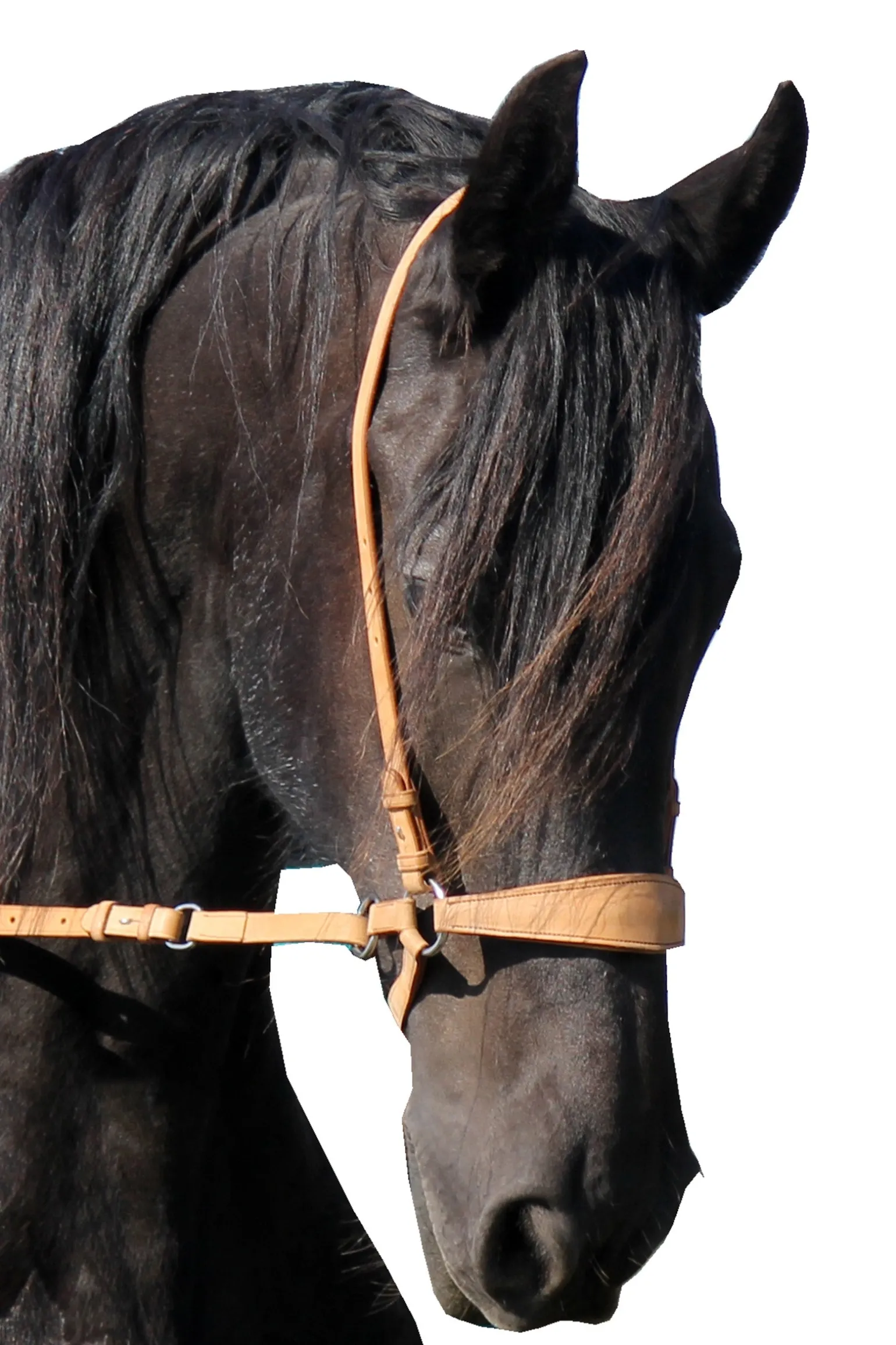 Die F.R.A. lami ist sowohl qualitativ als auch technisch ein sehr hochwertiges Produkt. Die lami hat ein im Nasenriemen eingebautes, ausgeklügeltes System, welches dafür sorgt, dass jede aufgebaute Zügelhilfe unmittelbar und vollständig wiedergegeben wird. Die Feder im Inneren des Nasenriemens leitet den Druck bei Zügelanzug auf die Nase. Lässt der Zügeldruck nach, lässt auch der Druck auf der Nase sofort nach. Dieser Zaum eignet sich besonders für Pferde dies senibel auf Druck reagieren, da die Einwirkung und Auflösung sehr direkt und ohne Verzögerung stattfindet. Der Nasenriemen kann auch problemlos mit anderen Genickstücken komibiniert werden. Die F.R.A. lami Trense ist aus hochwertigem englischen Leder gefertigt.