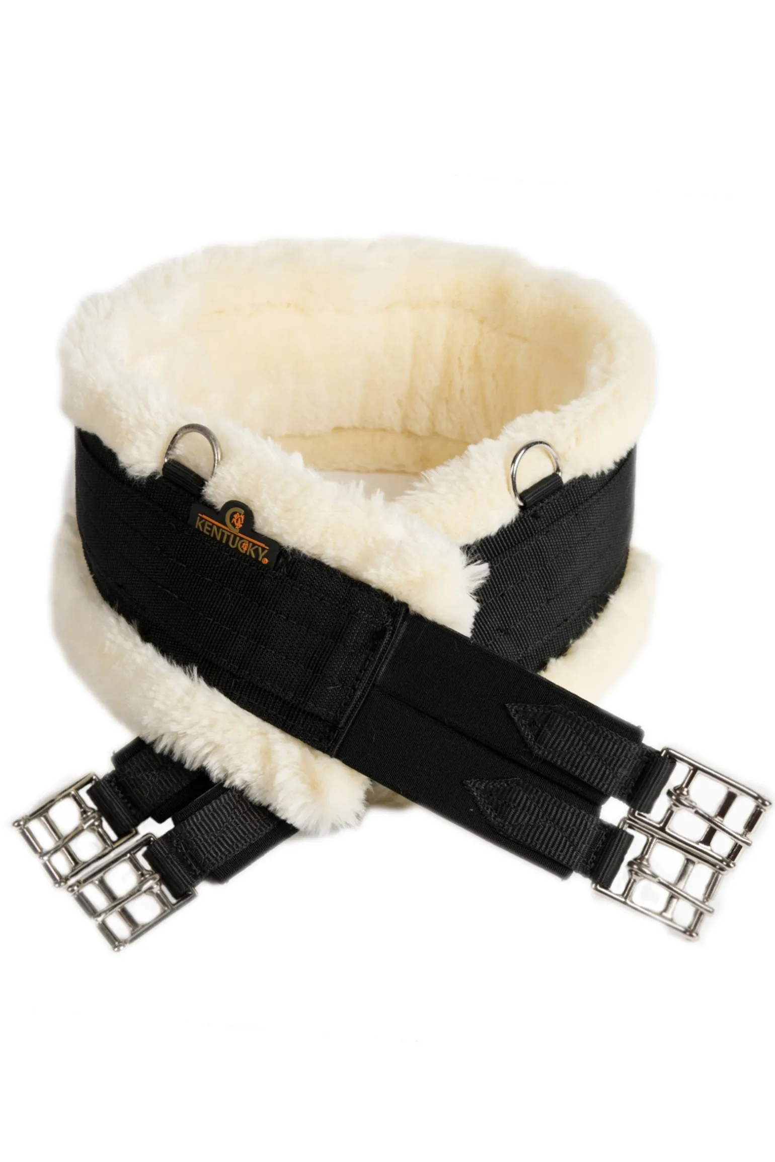 Der Kentucky Horsewear Lammfell-Gurt ist ein extrem weicher und komfortabler Gurt der hauptsächlich für Trainingszwecke verwendet wird. Er wurde für Pferde entwickelt, die eine empfindliche Haut bezüglich Gallen und Reibungen haben. Er besteht aus künstlich hergestelltem Lammfell mit den selben Eigenschaften und Leistungen von echtem Lammfell. Die Schnallen sind aus rostfreiem Edelstahl mit einem dreifach gelegten Elastikeinsatz auf beiden Seiten für mehr Stabilität und Langlebigkeit. Das Außenmaterial ist Nylon und damit sehr leicht. Der Lammfell Gurt kann in der Maschine gewaschen und an der Luft getrocknet werden.