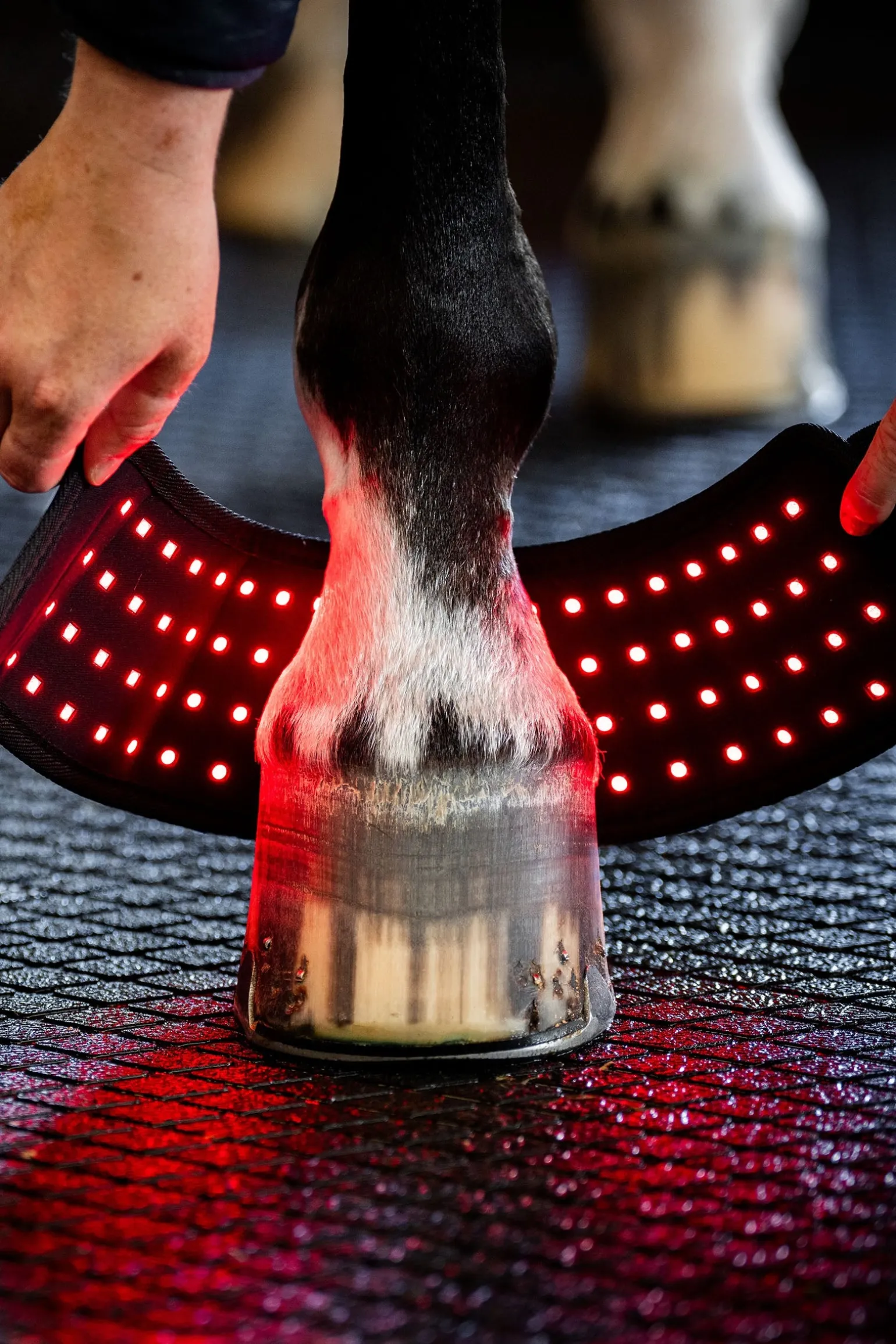 Kann an mehreren Stellen verwendet werden, einschließlich Hufe, Fesseln, Knie und Fesselgelenke. 80 LEDs verwenden eine Kombination verschiedener Lichtwellenlängen, um sowohl die Hautschicht als auch das Tiefengewebe zu behandeln. Ausgestattet mit drei Einstellungen und zwei Modi mit einem 15-Minuten-Timer: sowohl LED als auch Infrarot, nur rotes LED oder nur Infrarot, im konstanten oder pulsierenden Modus. Die Pulsfunktion kann die Wirkung der LED verstärken.