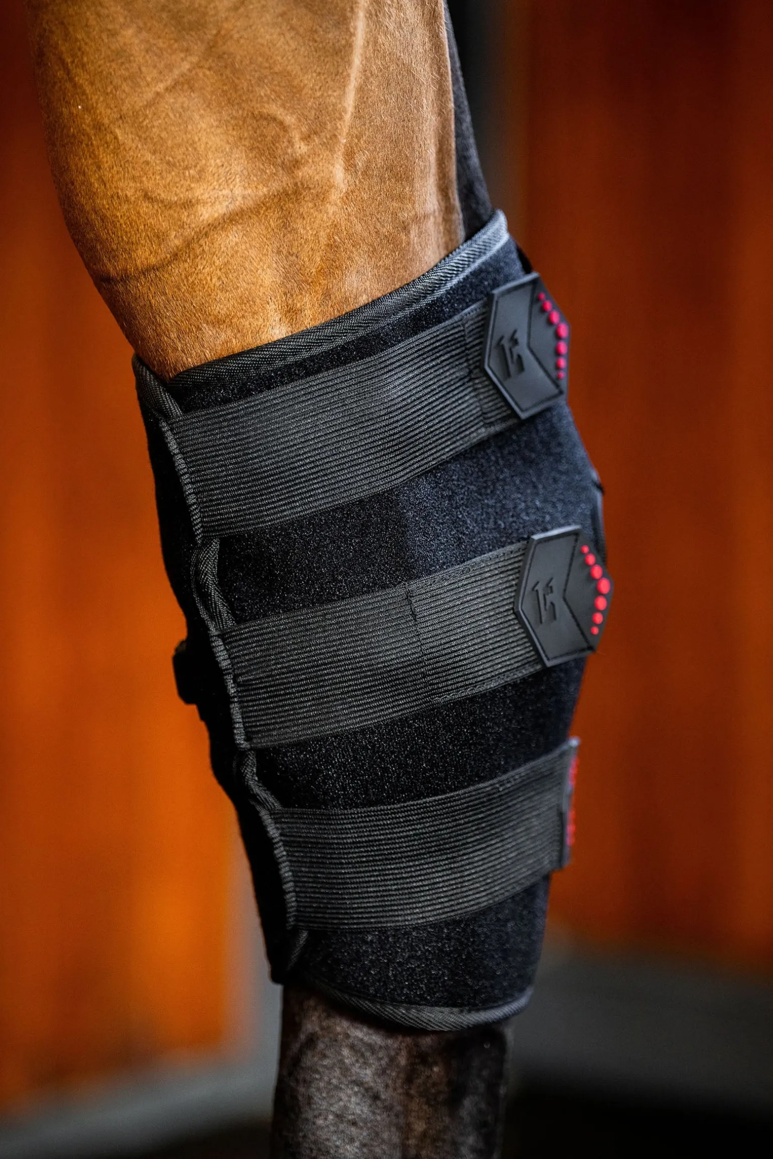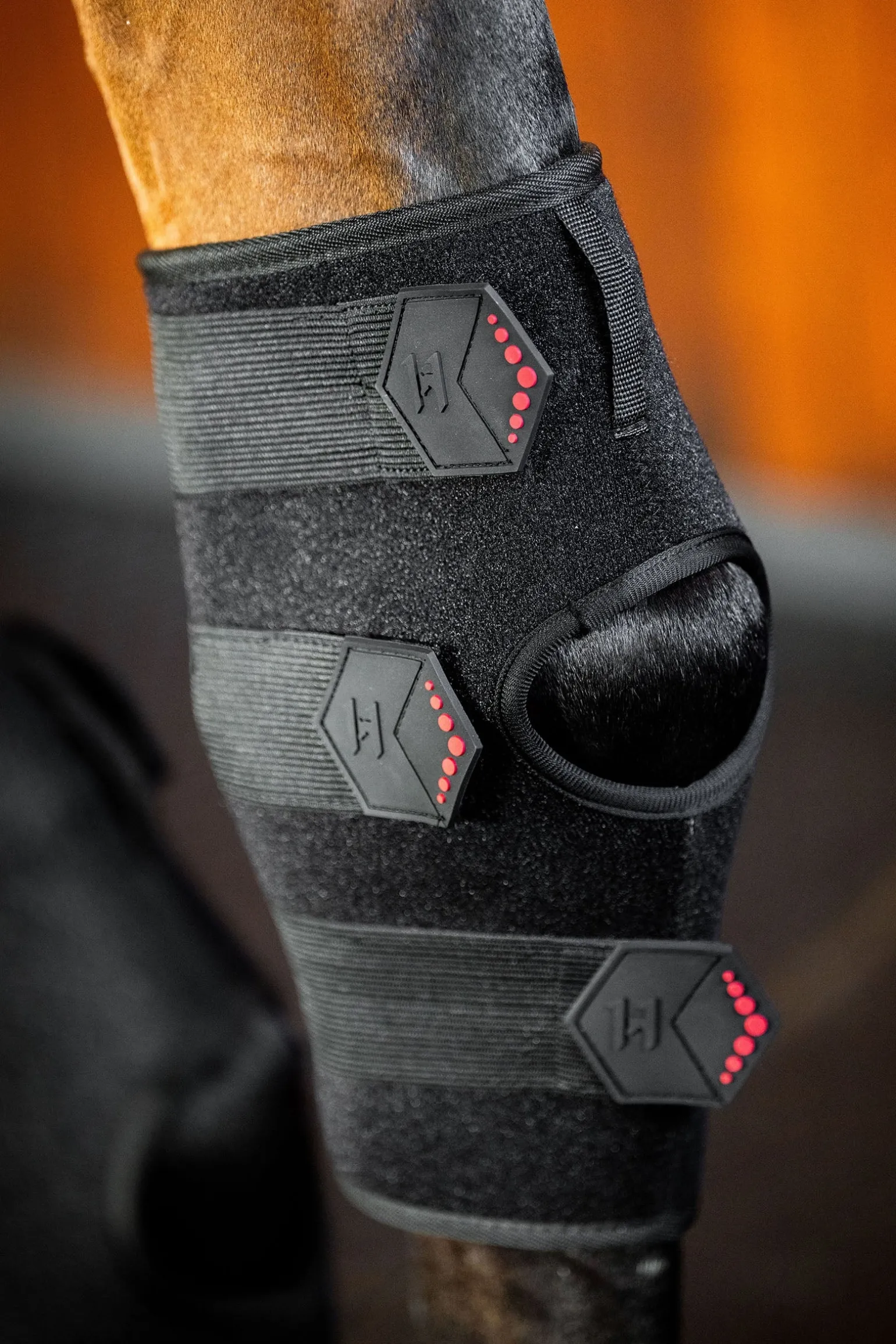 Die Horseware® LED-Rotlicht-Therapie Sprunggelenksgamasche kann bei Pferden mit steifen oder schmerzenden Sprunggelenken verwendet werden. 112 LEDs verwenden eine Kombination verschiedener Lichtwellenlängen, um sowohl die Hautschicht als auch das Tiefengewebe zu behandeln. Ausgestattet mit drei Einstellungen und zwei Modi mit einem 15-Minuten-Timer: sowohl LED als auch Infrarot, nur rotes LED oder nur Infrarot, im konstanten oder pulsierenden Modus. Die Pulsfunktion kann die Wirkung der LED verstärken.