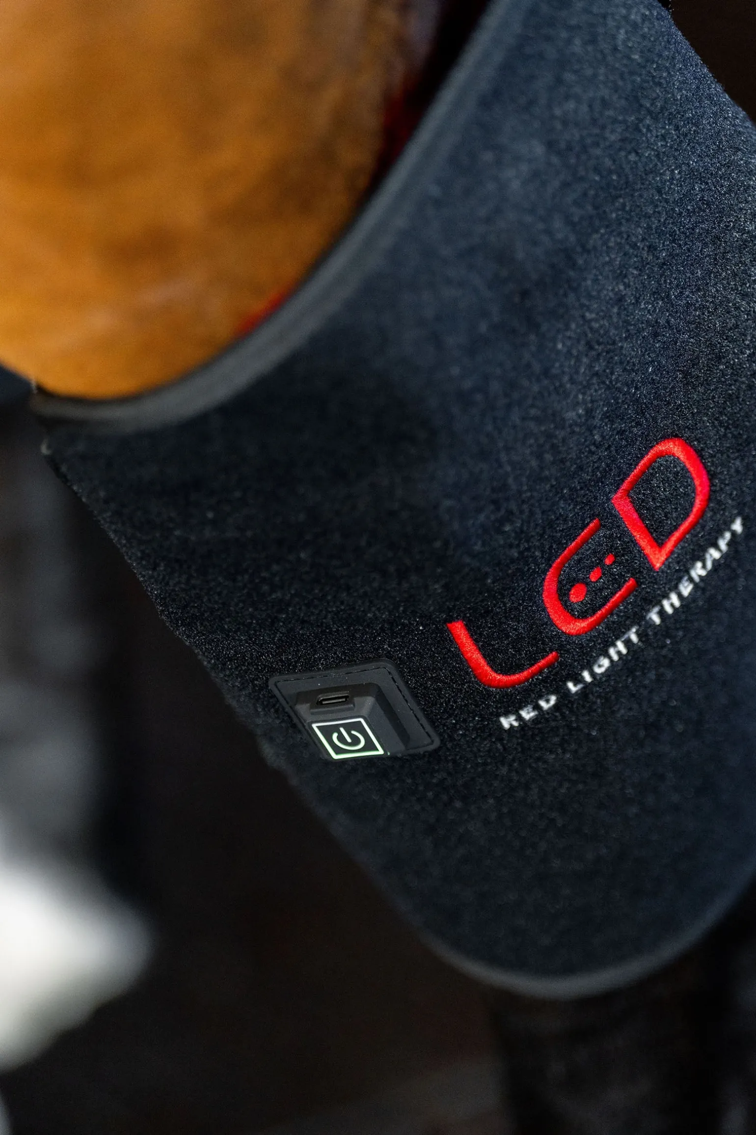 Wissenwertes zu diesem LED-Produkt: Der Akku benötigt etwa 4 Stunden, um vollständig aufgeladen zu werden. Dies ermöglicht ungefähr 8 Anwendungen. Das Produkt verlässt das Werk mit einer Ladung von nur etwa 20 %. Daher wird empfohlen, die verbleibende Ladung vollständig aufzubrauchen und den Akku anschließend vor der ersten Nutzung vollständig aufzuladen. Lasse das LED-Produkt nicht länger als sechs Wochen ungeladen. Vergewissere dich, dass dein Pferd nicht nass ist, wenn du dieses Produkt verwendest. Dies reduziert die Wahrscheinlichkeit, dass Wasser in die Ladeanschlüsse oder LED-Pixel eindringt. LED-Produkte müssen in einer Recyclinganlage entsorgt werden. Nicht direkt über einer offenen Wunde anwenden. Verwende das LED-Produkt nicht, wenn es irgendwelche sichtbaren Schäden aufweist. Richte das LED-Licht nicht direkt in die Augen. Dies kann die Augen verletzen/beschädigen.