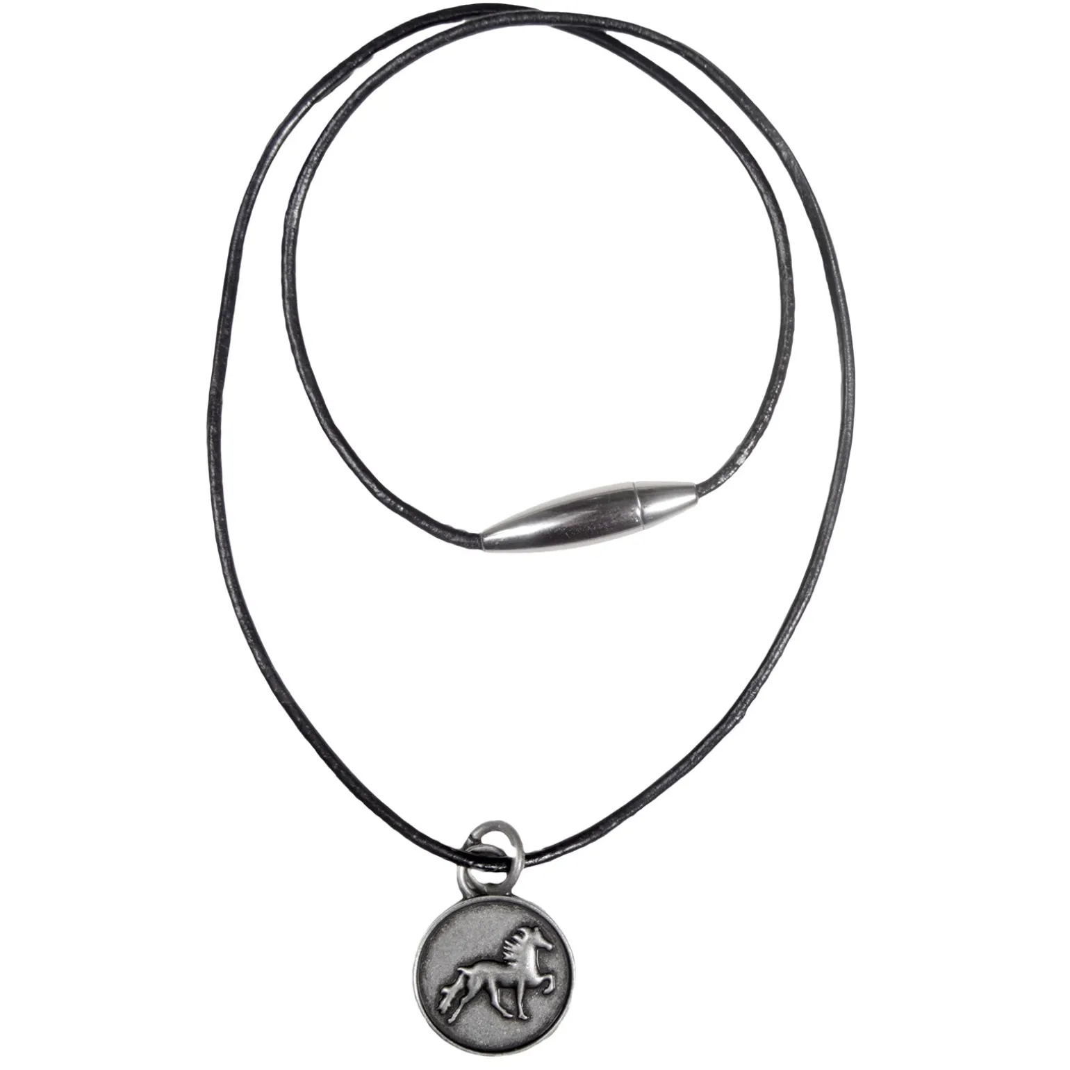 Leder-Halskette in hoher Qualität mit der magnetischen Sperrung einschließlich einen rustik Islandpferde-Anhänger. Geliefert in der kleinen Geschenkverpackung.