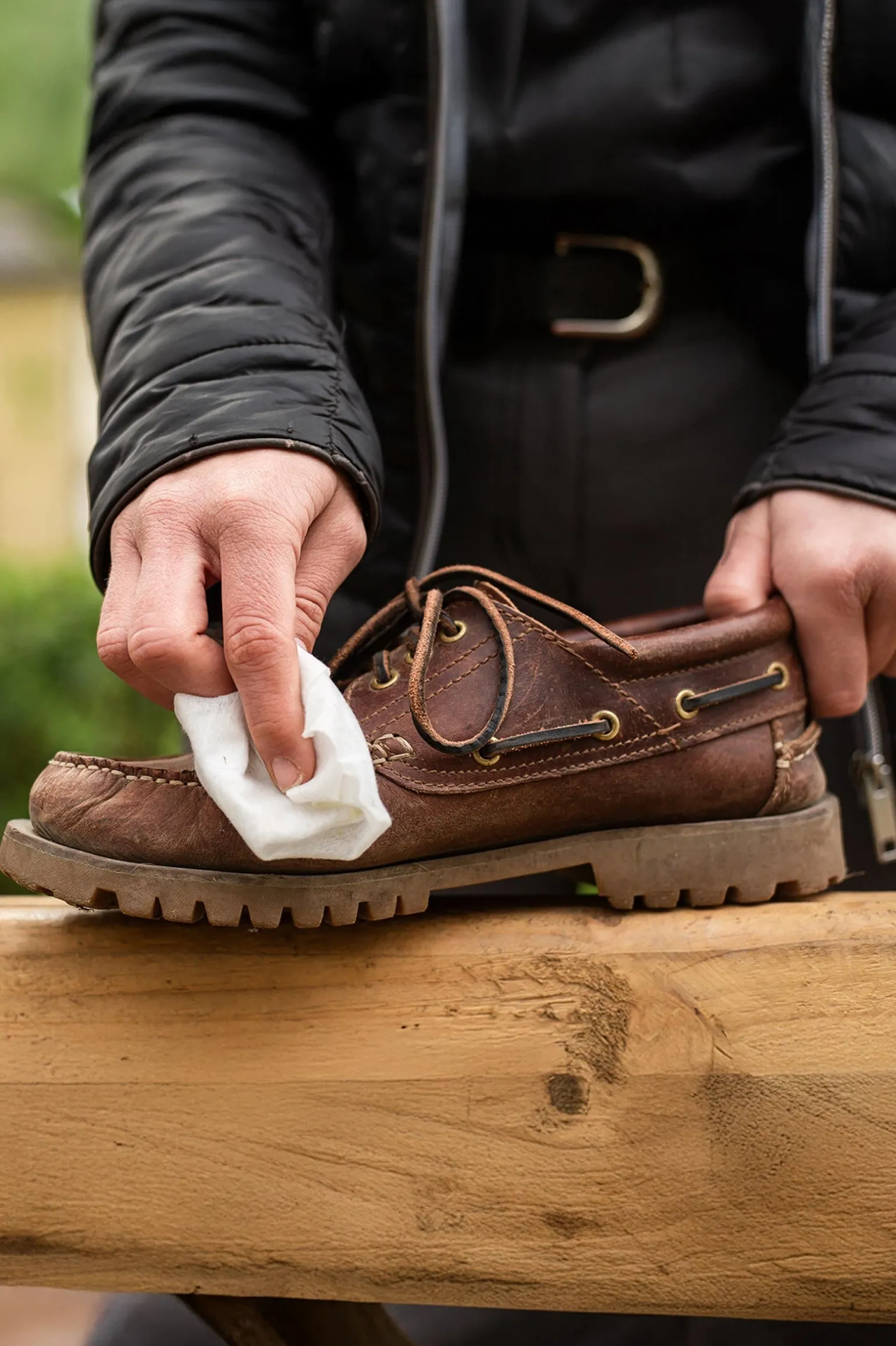 Hinweis: Leder ist ein Naturprodukt. Vor Erstanwendung immer an einer unauffälligen Stelle auf Verträglichkeit testen. Anwendung: Vor Gebrauch schütteln. Zedan Lederglanz mit einem weichen Baumwolltuch oder einem Poliertuch gleichmäßig auf das Leder auftragen. Einige Minuten trocknen lassen und mit einer feinen Glanzbürste oder Tuch polieren.