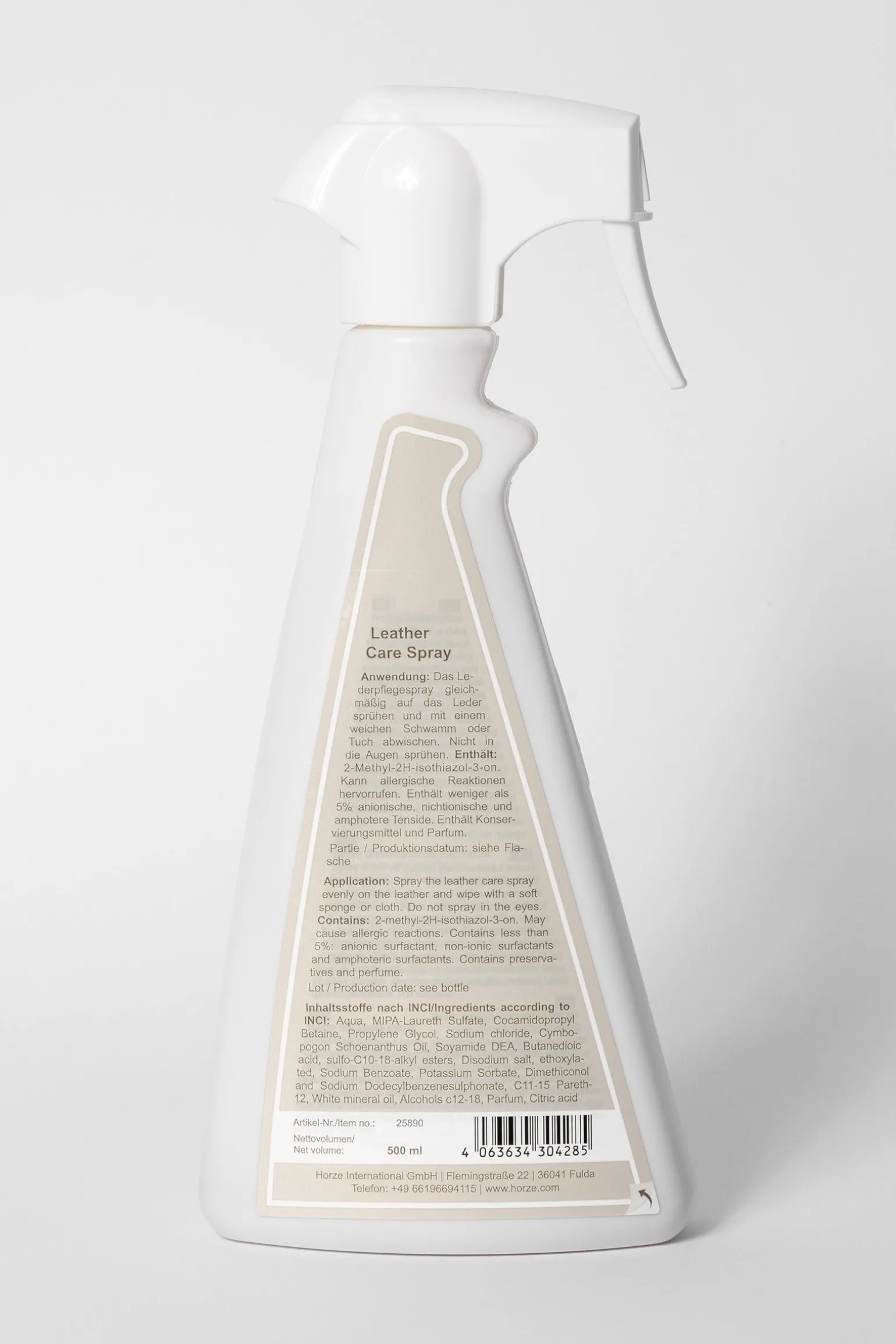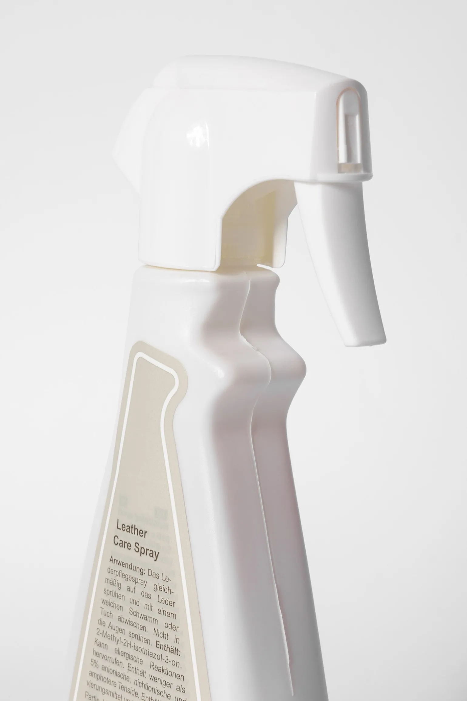 Gleichmäßig auf das Leder aufsprühen und mit einem weichen Schwamm oder Tuch abwischen.