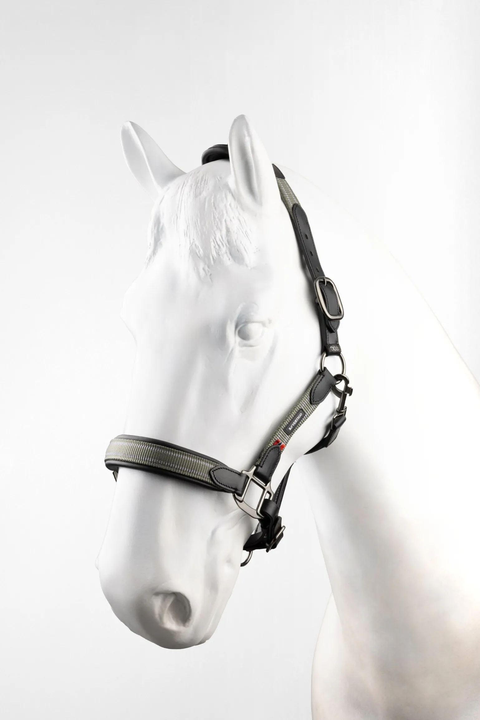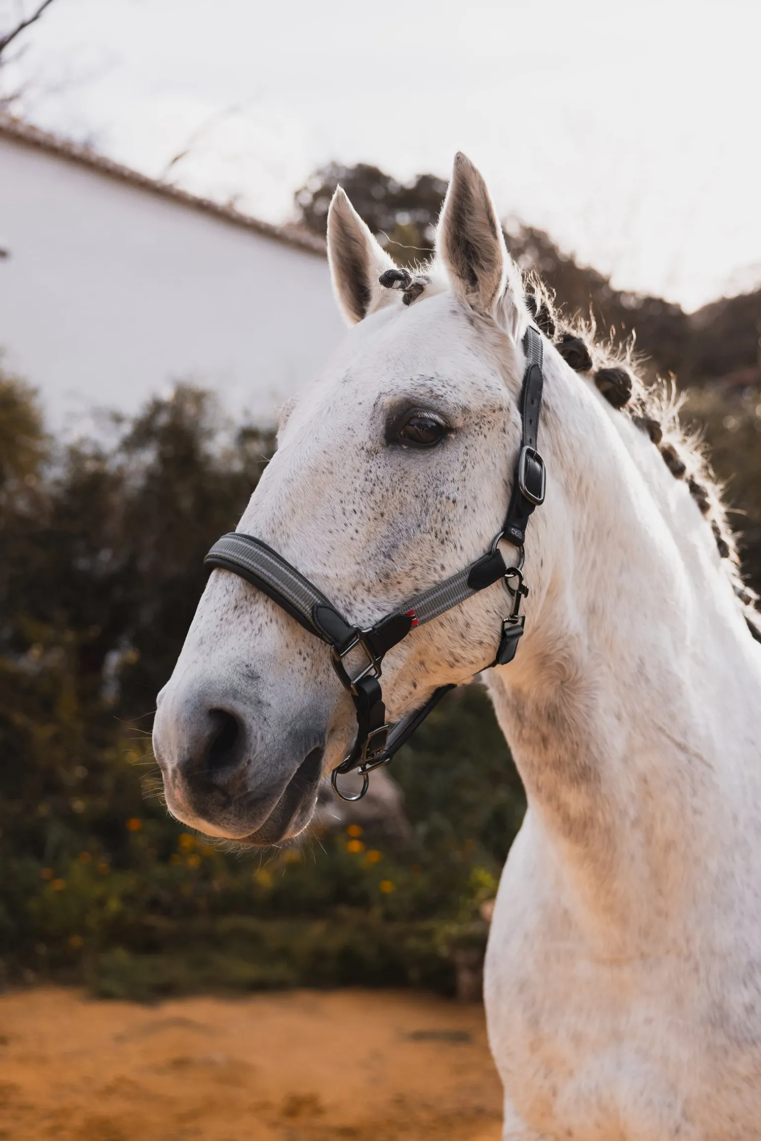 Dieses hochwertige Lederhalfter vereint Langlebigkeit und Eleganz. Der gewebte Riemen mit Lurex-Streifen an Backenstücken, Nasenriemen und Genickstück verleiht eine stilvolle Optik. Das anatomisch geformte Genickpolster sorgt für einen angenehmen Sitz. Gefertigt aus echtem Leder, mit weicher Polsterung an Nasen- und Genickstück für zusätzlichen Komfort. Gunmetal-farbene Metallbeschläge verleihen einen edlen Look. Ein praktischer Karabinerhaken an der linken Backe erleichtert die Handhabung.
