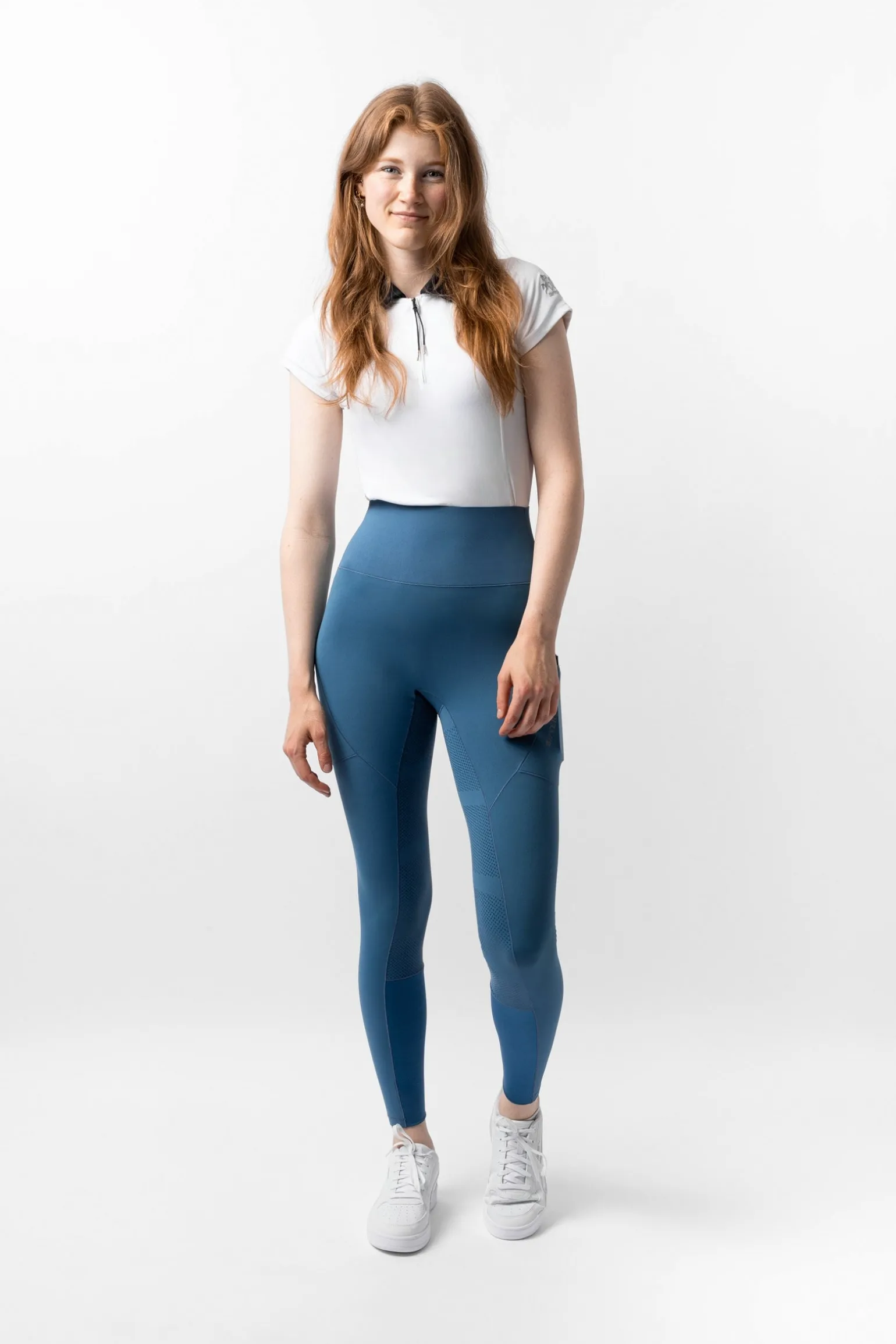 The B Vertigo Leonora Seamless Thermo Tights are designed for warmth and style during winter riding. Their insulating yet breathable fabric keeps you comfortable, while the seamless waistband creates a flattering silhouette. A silicone full seat offers secure grip in the saddle, and reflective logo details enhance safety. The brushed inside provides extra softness, and a thigh phone pocket adds practicality. With seamless edging and Lycra leg bottoms, these tights ensure comfort and elegance for daily training.
