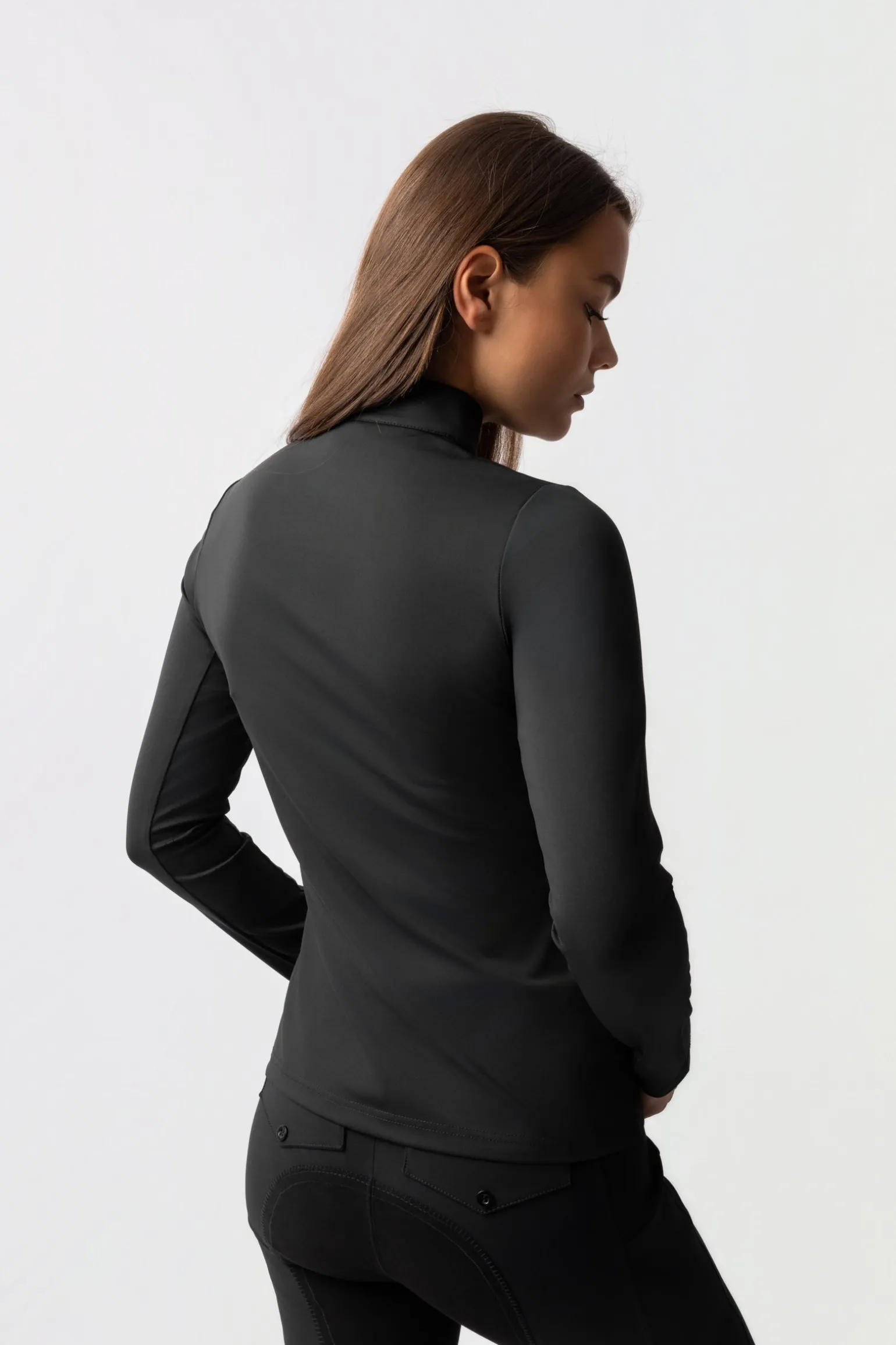 The Horze Lilian Longsleeve Training Shirt offers warmth and breathability for active riding. Its brushed inside fabric keeps you cozy, while laser-cut mesh inserts under the arms provide ventilation. A half zipper and stand-up collar make it practical for layering. Designed for both comfort and performance, this shirt is perfect for training sessions in cooler weather.