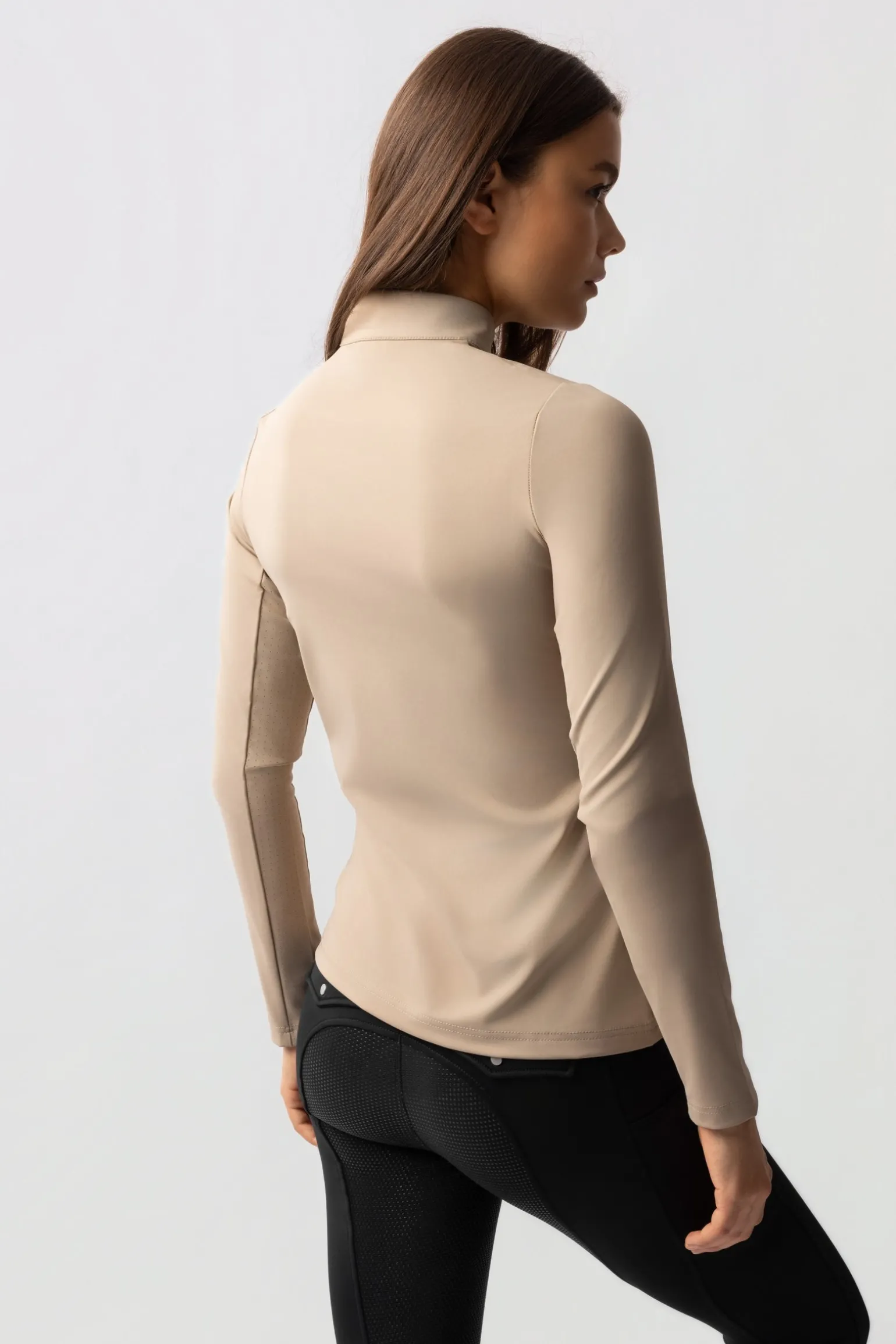 The Horze Lilian Longsleeve Training Shirt offers warmth and breathability for active riding. Its brushed inside fabric keeps you cozy, while laser-cut mesh inserts under the arms provide ventilation. A half zipper and stand-up collar make it practical for layering. Designed for both comfort and performance, this shirt is perfect for training sessions in cooler weather.