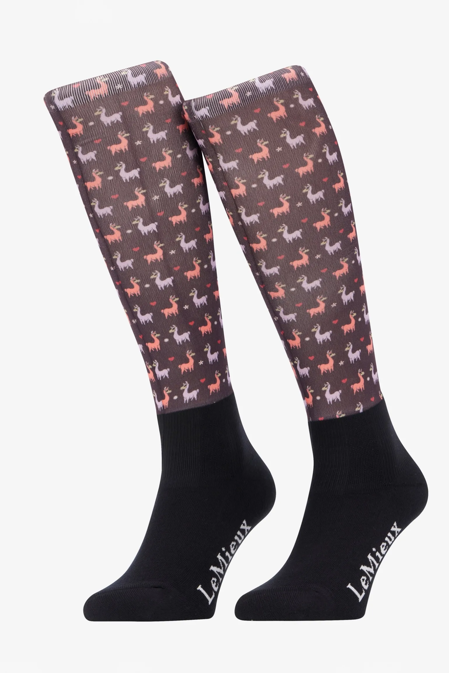 Der dicke Sohlenbereich sorgt für ein weiches Polster, während die elastischen Abschnitte um den Fuß den Reiter*innen Stabilität und Halt geben. Ein extra gepolsterter Knöchelbereich verhindert Druckstellen unter dem Stiefel. Der Footsie aus feuchtigkeitsableitendem Garn sorgt das ganze Jahr über für Komfort. Der ultradünne Wadenbereich sorgt für ein eng anliegendes Tragegefühl, ohne im Stiefel aufzutragen, und bietet gleichzeitig rutschfesten Halt. Diese originellen Socken sind in Farben erhältlich, die sich mit den LeMieux Base Layers kombinieren lassen, und bringen deinen Reitstil perfekt zum Ausdruck.