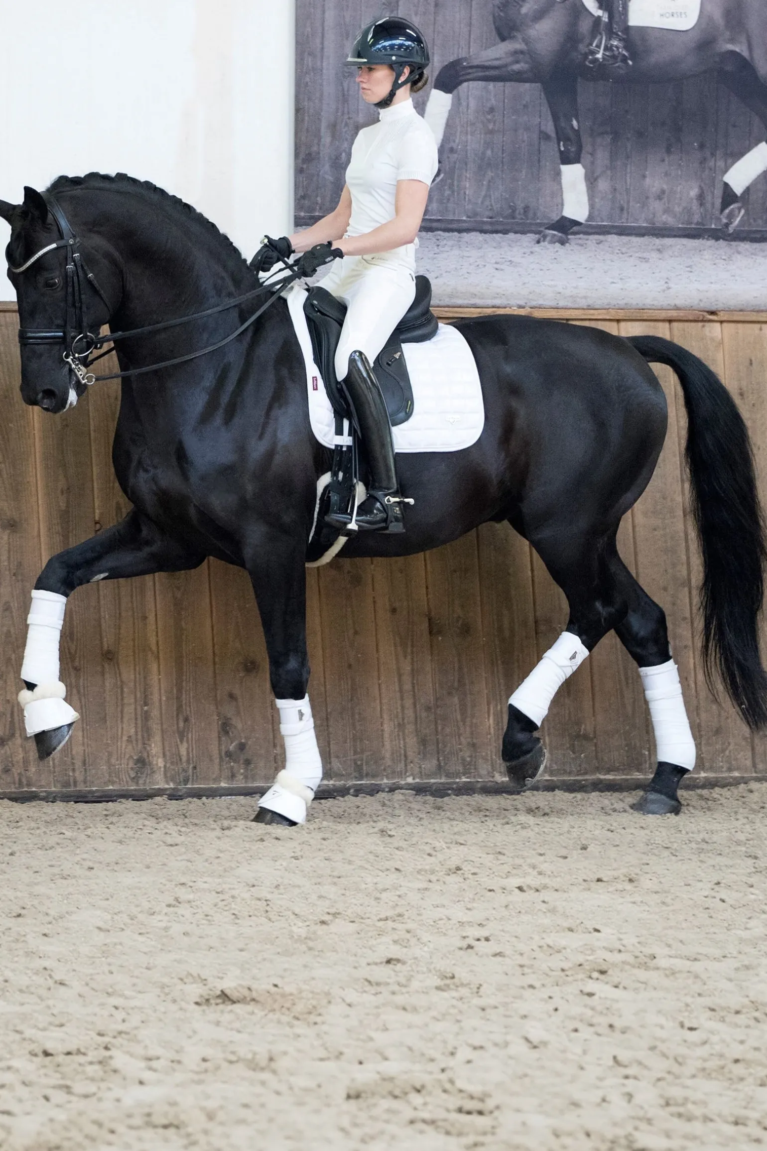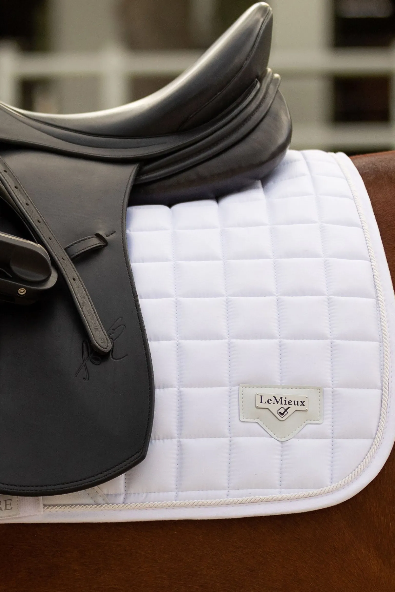 Beschrieben als das stilvollste Sattelpad, das LeMieux je produziert hat. Das Loire Sattelpad strahlt Raffinesse und Klasse aus – es zeigt Stil, ohne anzugeben! Das gewebte Satinstoff verleiht diesen Pads einen schönen Glanz und profitiert gleichzeitig von der wunderbar weichen und atmungsaktiven Bambus-Innenfutter. Das 100% natürliche Bambusmaterial reguliert Wärme und Schweiß und leitet Feuchtigkeit sehr effizient ab. Ein weicher Memory-Schaum-Kragen unterstützt die Vorderseite des Sattels und sorgt für Stabilität. Das gesamte Pad profitiert von einer neuen, gründlich erforschten, weichen, reibungsfreien Wildleder-Einfassung, die speziell so gefertigt ist, dass sie die Kanten glatt umschließt. Diese neue Technik hilft, die perfekte Sattelpad-Form und das Einfassungsprofil zu erhalten. Der texturierte PU-Leder-Gurtbandschutzbereich wird durch ein geprägtes Logo ergänzt und trägt den gewohnten LeMieux-Untergurt mit seinen inneren Verriegelungsschlaufen. Das Highlight des Loire Jumping Square ist das einzigartige Metallabzeichen auf einer Lederhalterung in der unteren hinteren Ecke. Entwickelt, um auf die meisten modernen Close-Contact-Sättel zu passen, mit genau der richtigen Polsterung und Stoßdämpfung.