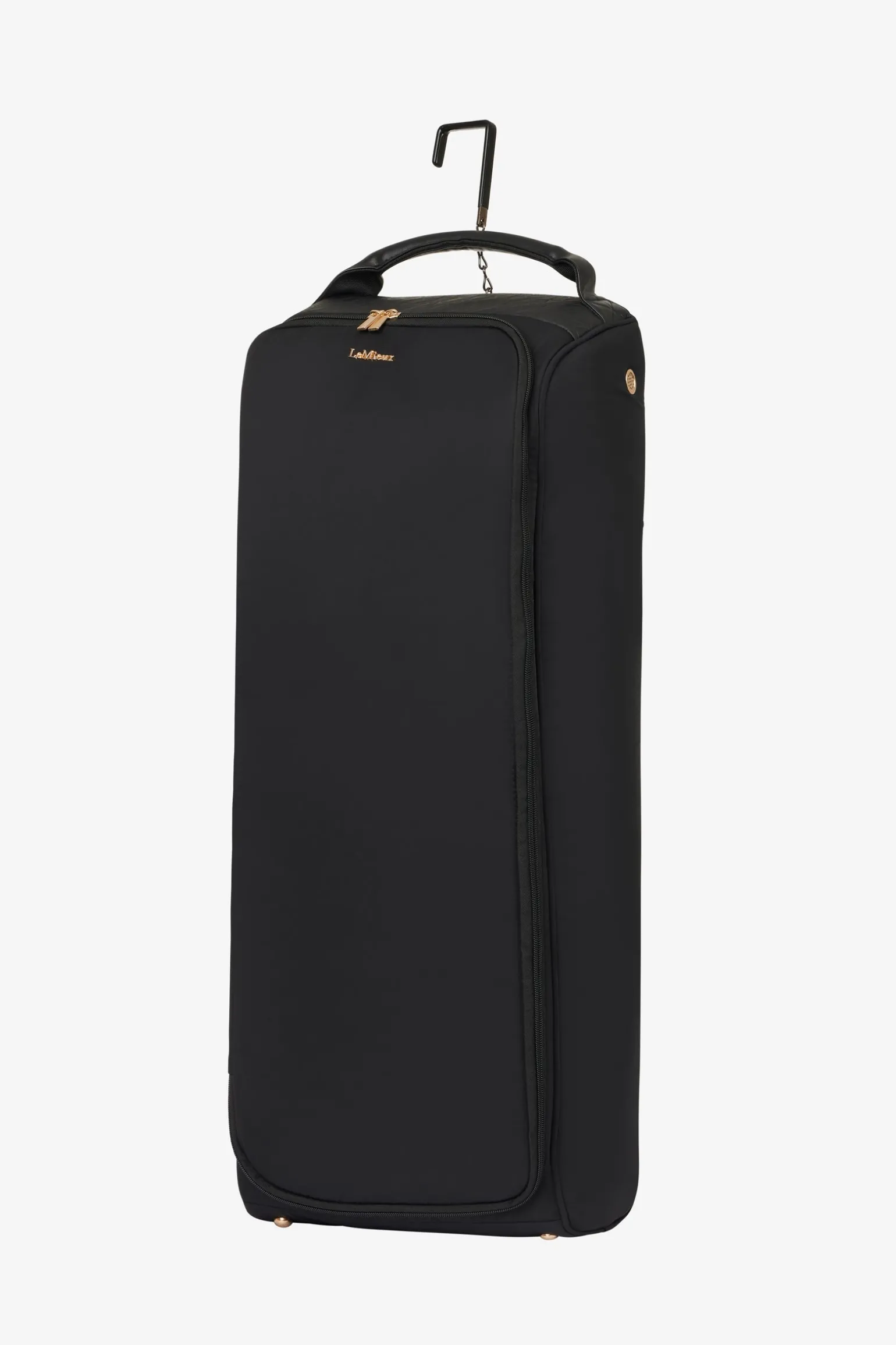 Diese luxuriöse Trensentasche bewahrt dein Zaumzeug sicher auf, schützt es und ermöglicht den bequemen Transport. Im Inneren findest du eine Aufhängung mit Haken, gefüttert mit super weichem, gestepptem Kunstfell, das zusätzlichen Schutz bietet. Großzügige Reißverschlussöffnungen, abwischbare Kunstlederplatten und Mesh-Luftöffnungen verhindern die Ansammlung von Feuchtigkeit. Der robuste, gerollte Kunstleder-Tragegriff oben, die vordere Reißverschlusstasche und mehrere Innentaschen bieten dir zusätzlichen Komfort und Stauraum. Ein starker Haken und eine Kette ermöglichen das einfache Aufhängen der Tasche. Diese Trensentasche passt perfekt zur Luxe Luggage Produktpalette und ist ideal für den Turnierreiter geeignet.