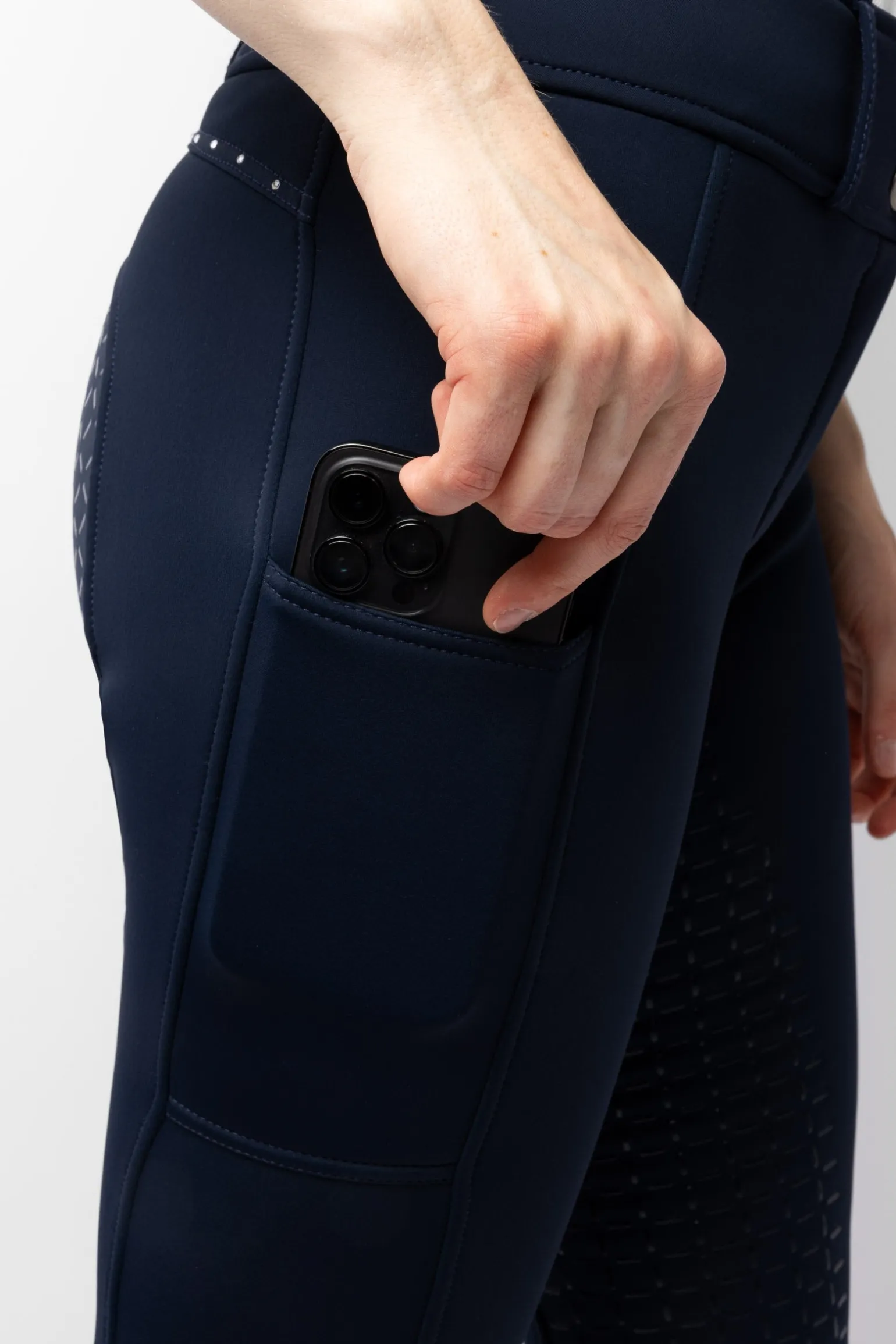 Warme Winterreithosen werden dein bester Freund für das Reiten bei kaltem Wetter sein. Diese hoch geschnittenen Reithosen haben einen angenehmen Stretch und eine Seitentasche am rechten Oberschenkel mit Platz für ein Handy. Die Horze Thermo Silicone Full Seat Breeches verfügen über eine speziell geformte Naht am Rücken für eine bequeme Passform.