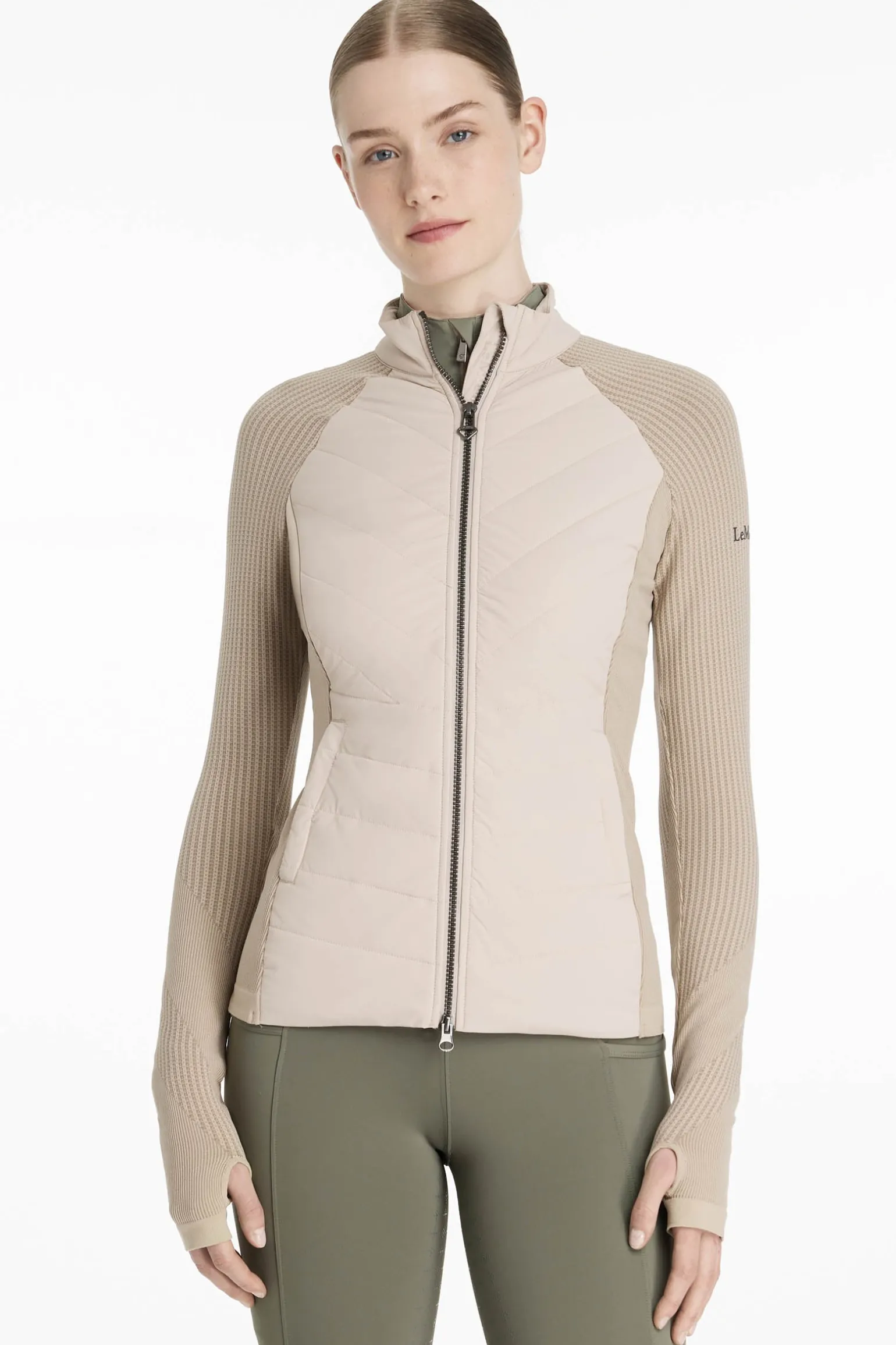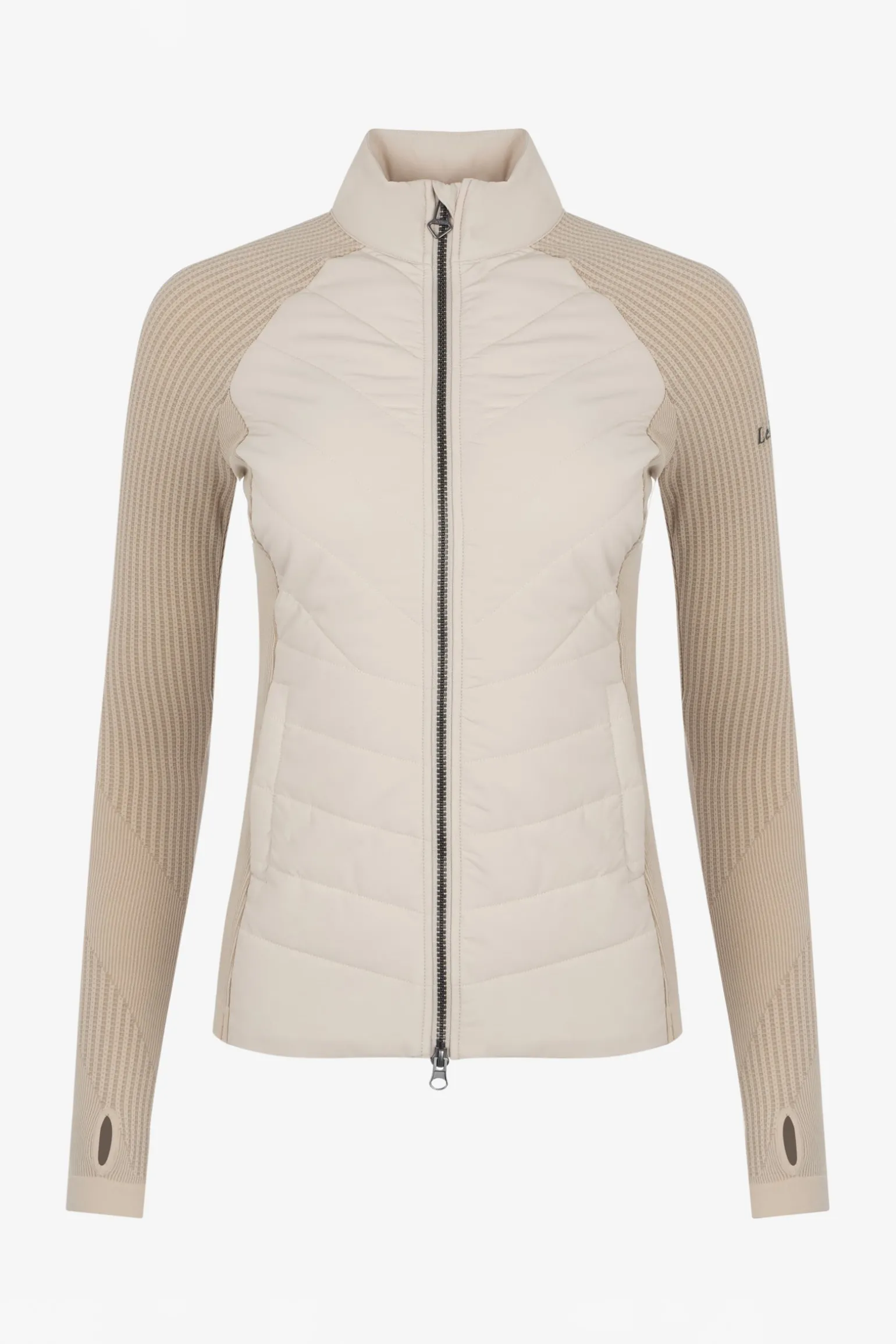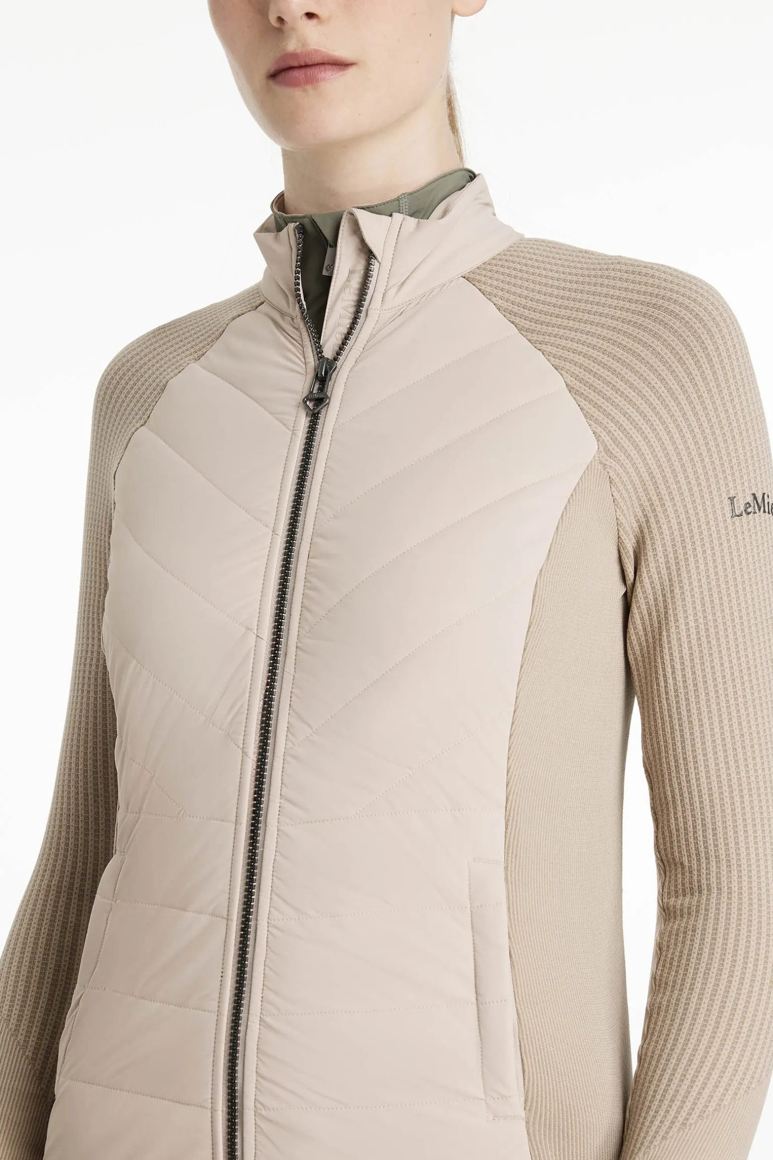 Ein Zwei-Wege-Reißverschluss mit auffälligem Metallschieber bietet vielseitige Styling-Optionen und das dezente LeMieux Logo für jede Menge Stil.