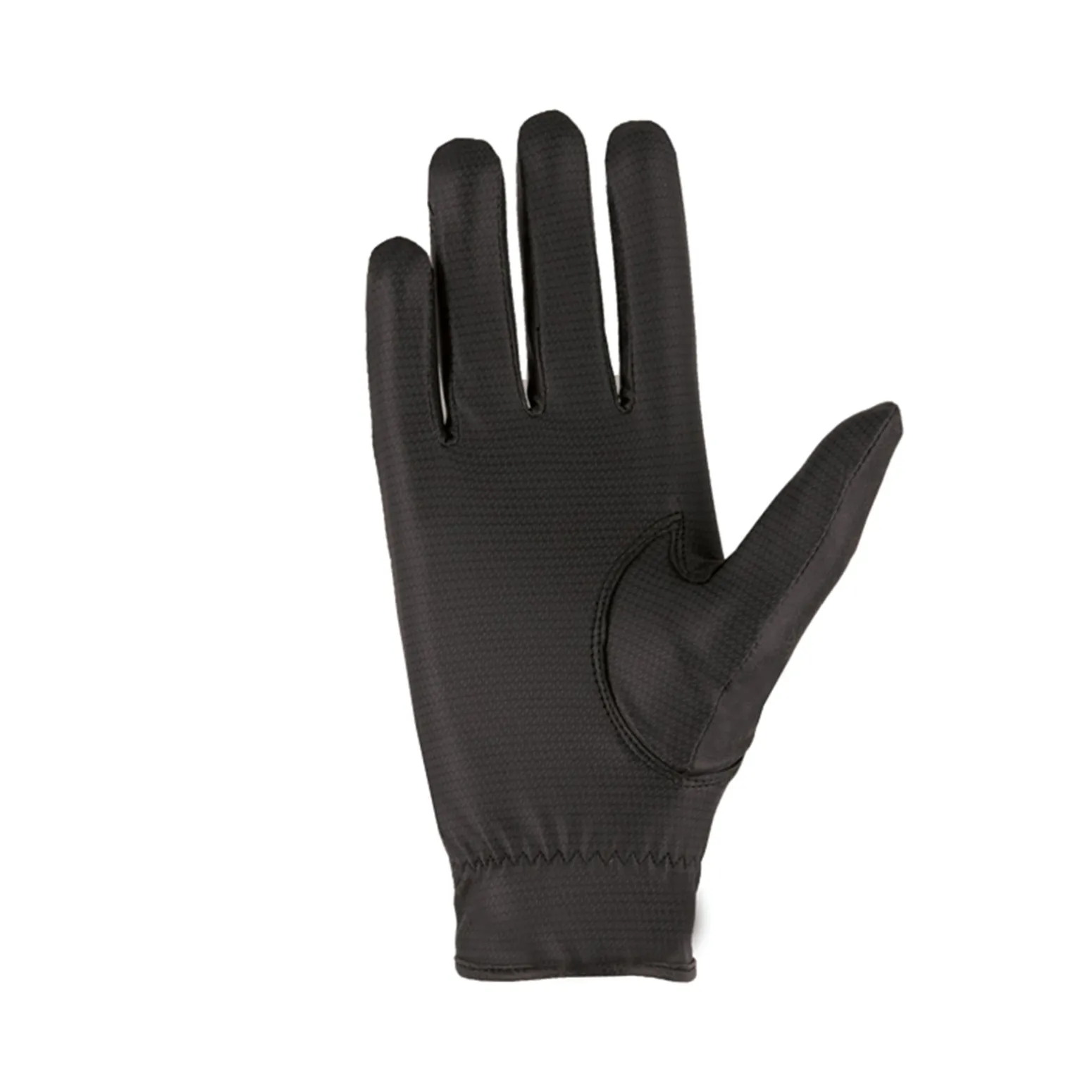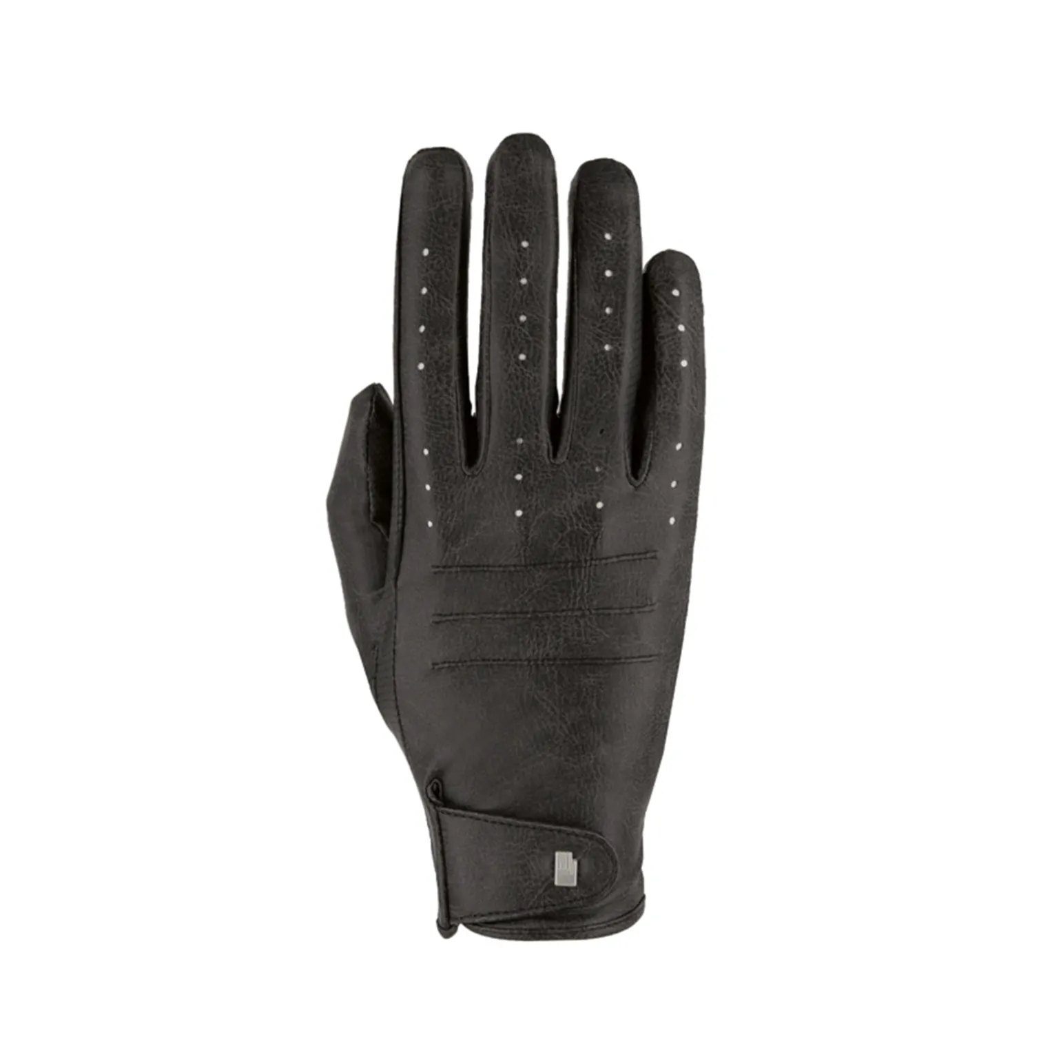 Stilbewusste Reiter werden von dem leichten und besonders eleganten Reithandschuh MALAGA begeistert sein. Die Oberhand ist mit dem Exklusivmaterial SUPREMA by ROECKL versehen – einem geschmeidigen und atmungsaktiven Synthetikmaterial, das besonders angenehm zu tragen ist und optisch sowie haptisch kaum von Nappaleder zu unterscheiden ist. Perforierungen an den Fingern optimieren die Atmungsaktivität zusätzlich. Die Innenhand aus ROECK-AIR ist mindestens genauso geschmeidig und legt bei der Atmungsaktivität sogar noch eine Schippe drauf. Für eine schlanke Silhouette und hohen Komfort sorgt die exklusive COMFORT-CUT Schnittführung. Ergänzt werden der schmale, anliegende Schnitt, das exquisite Material und das edle Design des MALAGA durch einen Klettriegel am Handgelenk, der Sitz und Passform perfektioniert und auf dem das stilisierte ROECKL Händchen als Niete modische Akzente setzt. Übrigens, die gesamte Innenhand ist TOUCHSCREEN COMPATIBLE, sodass sich Smartphone & Co. bequem mit Handschuhen bedienen lassen.