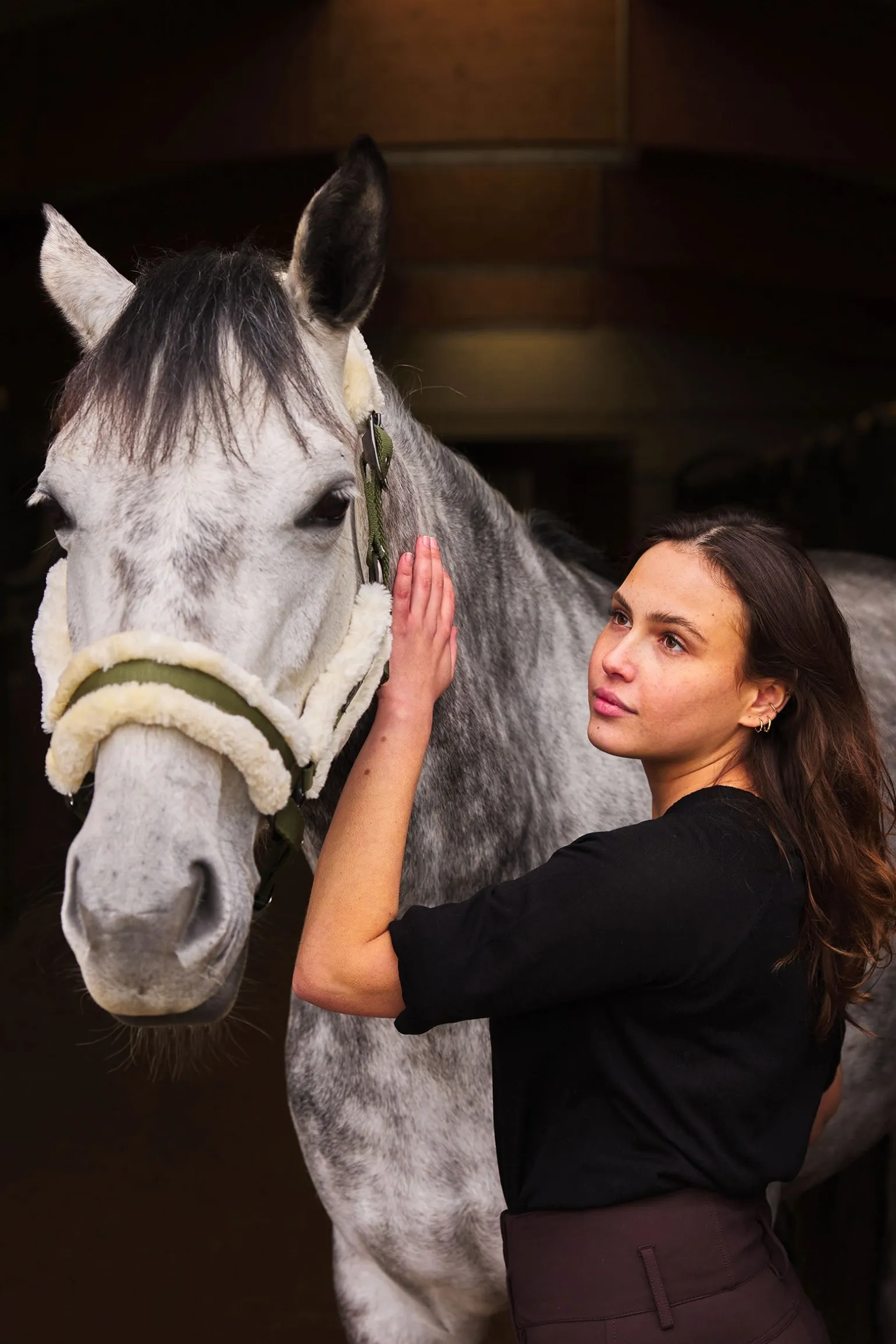 Dieses weiche Halfter in dezenten Farben passt perfekt in deine Reitausrüstung.