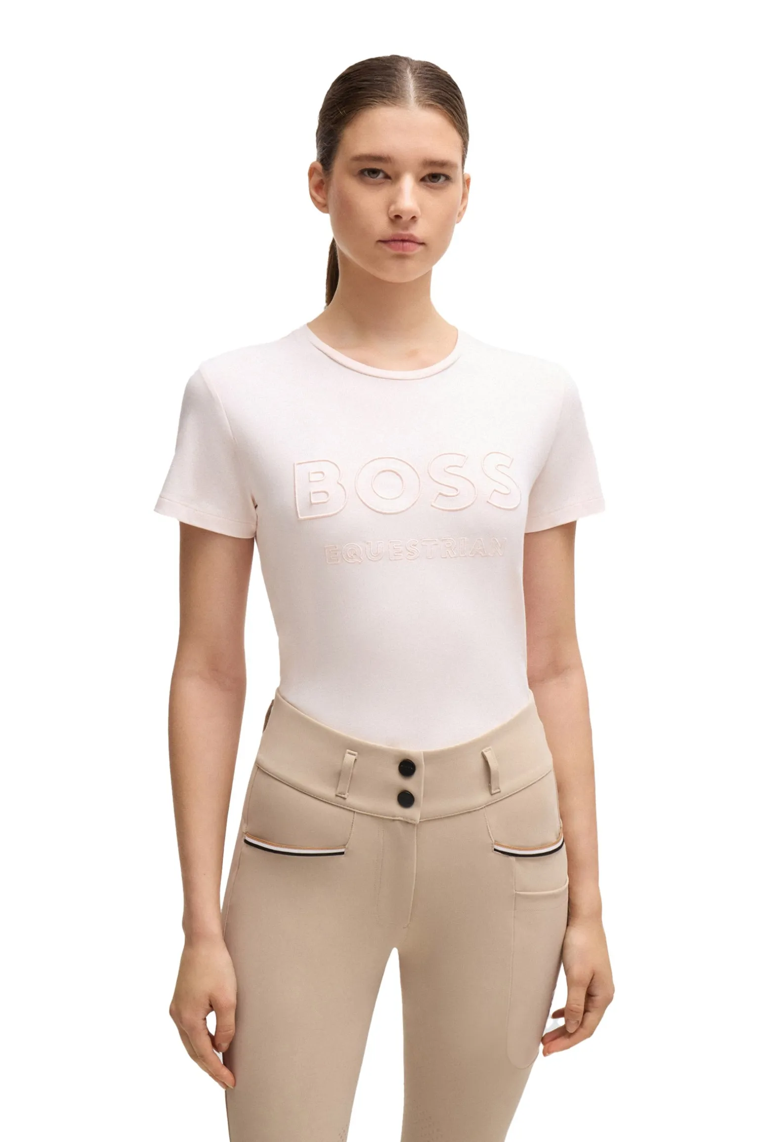 Kurzärmeliges T-Shirt mit in Ton-in-Ton gesticktem Schriftzug. Dieser Klassiker kann wirklich mit allem kombiniert werden, sogar mit einer schicken Hose als Arbeitsoutfit.