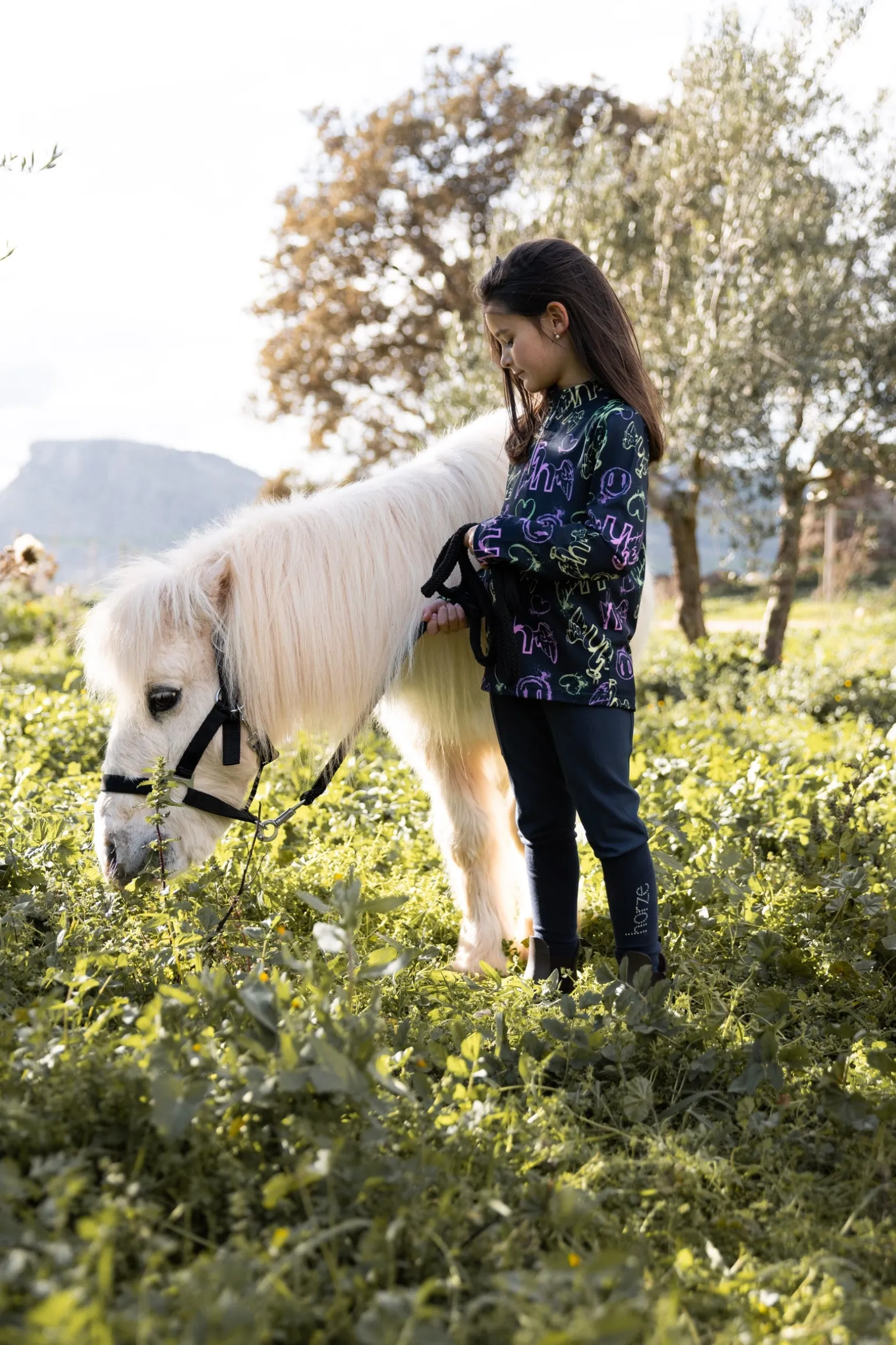 Diese hohen Reitkniestrümpfe bieten jungen Reitern Komfort und Stil. Hergestellt mit einem hohen Baumwollanteil für ein weiches und atmungsaktives Tragegefühl. Erhältlich in zwei stilvollen Varianten: mit funkelndem Kristall-Logo oder einem Allover-Design. Perfekt für das Tragen unter Reitstiefeln, sorgt für eine bequeme und passgenaue Form.