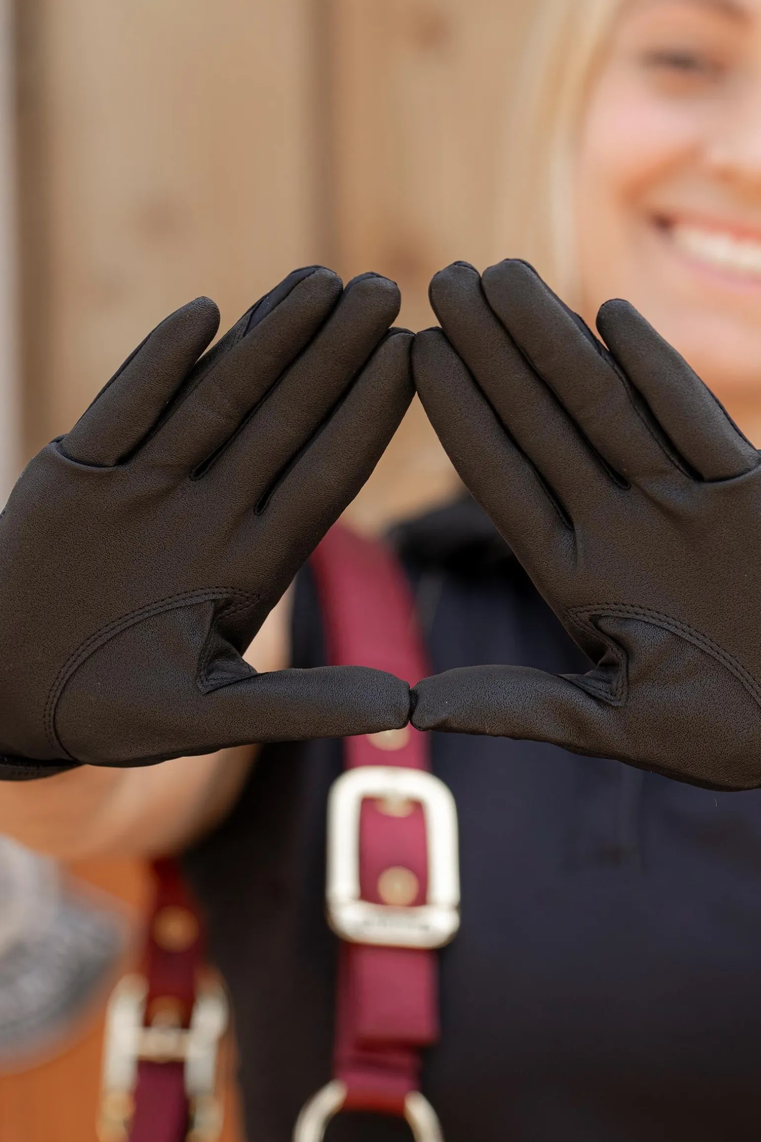 MESSARA und der Hashtag #teamfinehands helfen Reitern, ihre Überzeugung für feines Reiten und den respektvollen Umgang mit ihren Pferden auszudrücken. Sobald du ihn anziehst, wirst du es spüren: Dieser Reithandschuh erleichtert die sensible Kommunikation durch Berührung und feine Impulse. Das extrem dünne und elastische Nylon Dull sowie das bedruckte Dura Elastic-Material auf dem Handrücken sorgen für eine geschmeidige Passform und uneingeschränkte Bewegungsfreiheit beim Führen der Zügel. Die gesamte Handfläche besteht aus besonders haptischem, dünnem und zuverlässig rutschfestem Soft PU-Material, das eine feine Verbindung zum Pferd ermöglicht. Dieses Modell ist besonders für den Umgang mit Leder- und Gurtzügeln geeignet und verfügt über einen farblich abgestimmten Streifen entlang der Handkante mit dem #teamfinehands Hashtag sowie ein geprägtes Roeckl Sports-Logo auf dem Zeigefinger.
