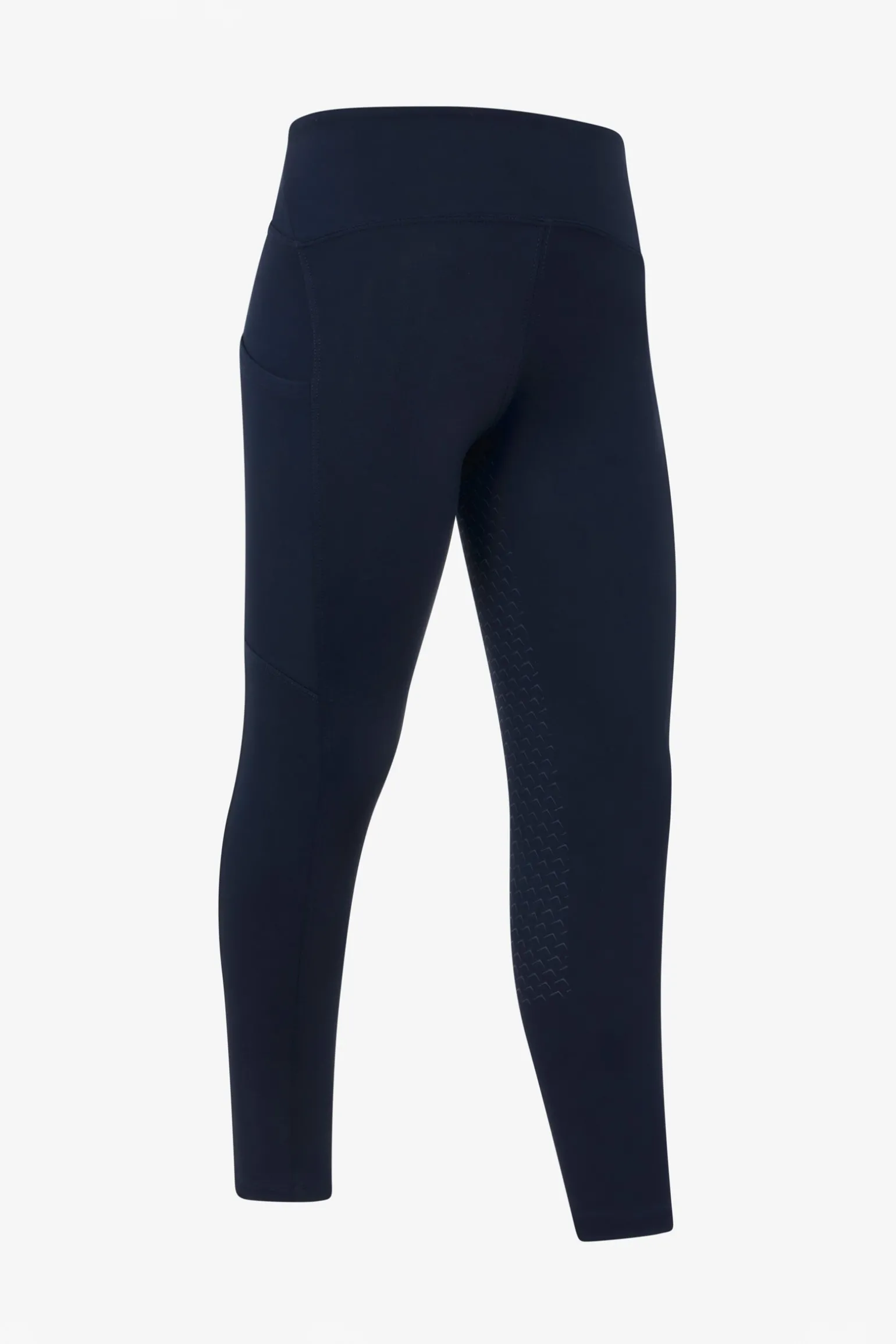 Diese kuschelig gefütterten Reitleggings halten kleine Reiter*innen auch bei kaltem Wetter angenehm warm. Das angeraute Material mit thermischen Eigenschaften speichert die Wärme zwischen Haut und Stoff, sodass sie es bei winterlichen Ausritten angenehm warm haben. Der griffige Silikonvollbesatz sieht hübsch aus und bietet kleinen Reiter*innen zusätzliche Sicherheit im Sattel. Reflektierende Logos sorgen tagsüber für einen schönen Farbakzent und gute Sichtbarkeit bei schlechten Lichtverhältnissen. Der hohe Bund und spezielle, geformte Einsätze bieten Halt an den richtigen Stellen – praktisch, wenn man gerade mit dem Reiten anfängt.