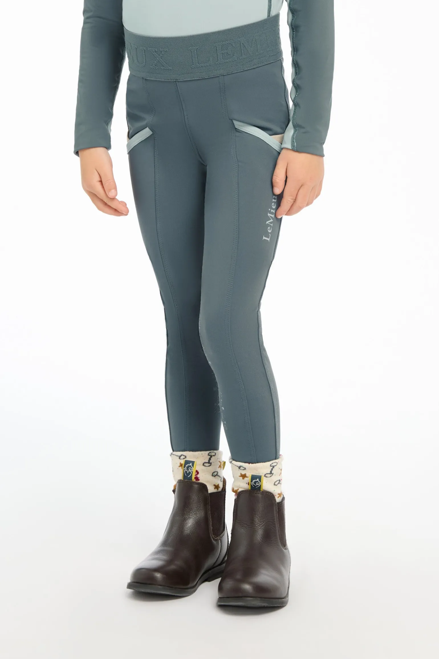 Aktive kleine Reiterinnen und Reiter werden sich im Sattel mit diesen Mini-Pull-On-Reithosen wohl fühlen. Der leichte, technische Stoff nutzt Feuchtigkeitsableitungstechnologie, die überschüssige Feuchtigkeit von der Haut abzieht und die Mini-Reiterinnen und -Reiter kühl und trocken hält, während sie an ihren Reitfertigkeiten arbeiten. Das vierwegede Dehngewebe und das nahtlose Design bieten bewegungsfördernde Freiheit, während der aktualisierte elastische Bund mit Jacquard-Branding eine sichere und unterstützende Passform gewährleistet. Auf beiden Seiten befinden sich zwei elastische Taschen, um Schätze und Leckereien sicher aufzubewahren, ohne beim Reiten, auf dem Hof oder einfach im Alltag zu stören. Für zusätzliche Sicherheit im Sattel haben wir ein Silikon-Vollbesatzmuster hinzugefügt, das außergewöhnlichen Halt bietet. Schließlich bietet das konische Design am unteren Beinende zusätzlichen Komfort und macht diese Pull-Ons zu einem Muss für kleine Reiterinnen und Reiter.