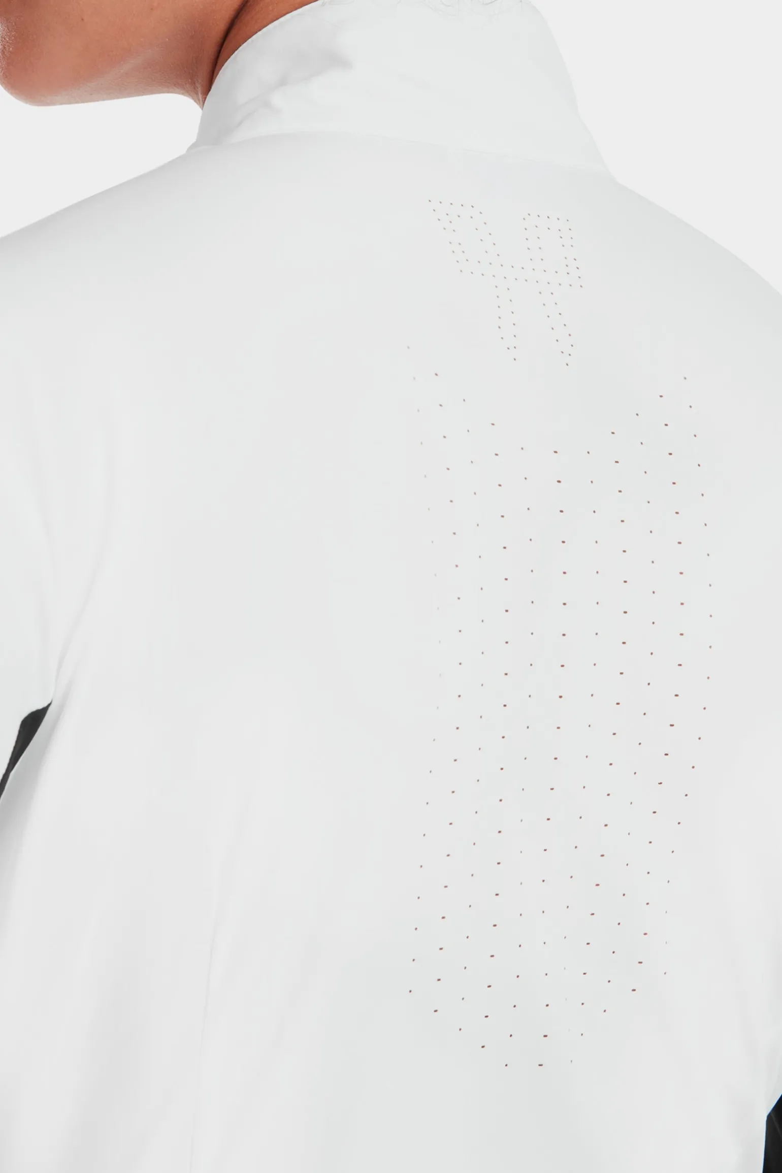 Wie das Kurzarmhemd Monica gewährleistet auch diese neue Variante das gleiche technisch ausgeklügelte Niveau. Mit seinem ergonomischen Schnitt und vorgeformten Ärmeln passt sich das Volumen des Hemdes perfekt an unsere Körperhaltung beim Reiten an. Die Form des Handgelenks wurde entwickelt, um Bewegungen beim Reiten zu erleichtern – perfekt für Turniere. Das Material wurde aufgrund seiner Elastizität und Atmungsaktivität ausgewählt. Die UV-BLOC-Technologie sorgt für Komfort und Schutz. Da man beim Reiten ganz schön ins Schwitzen kommen kann, leitet eine mikroperforierte Zone im Rückenbereich die Wärme bei intensiver Anstrengung effektiver ab. Der erhöhte Kragen eignet sich für Disziplinen wie Hunter.
