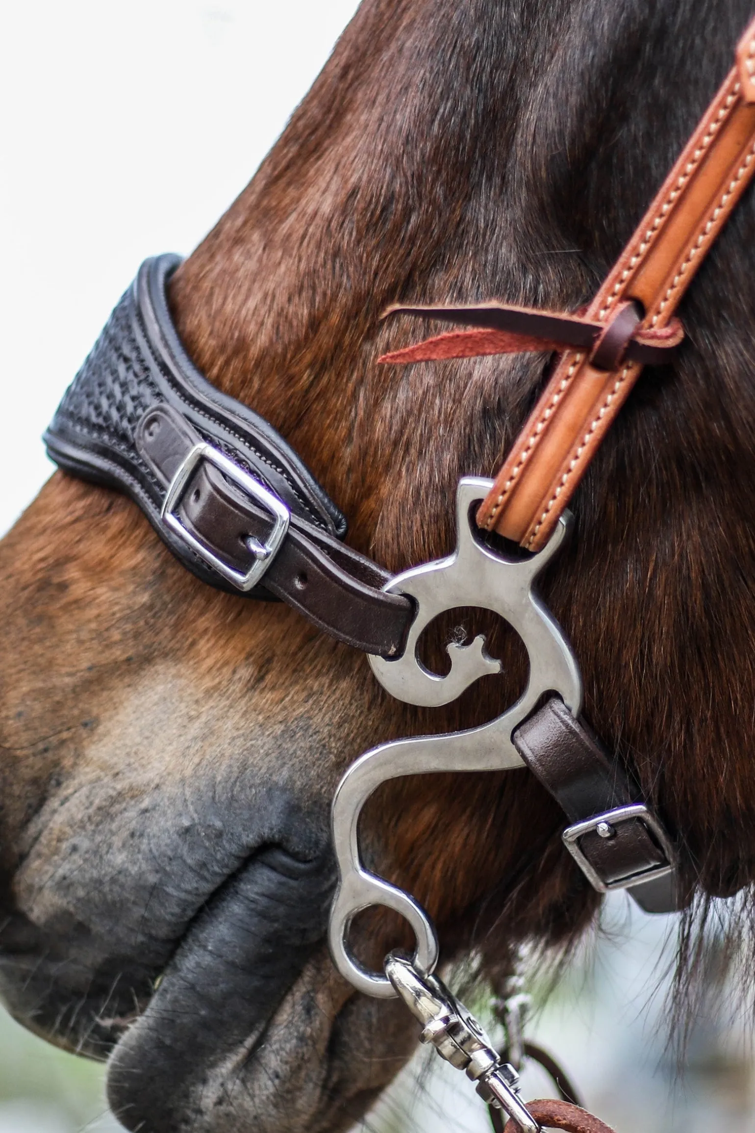 Set of 2 pieces hackamore of stainless steel (rvs) or brass.