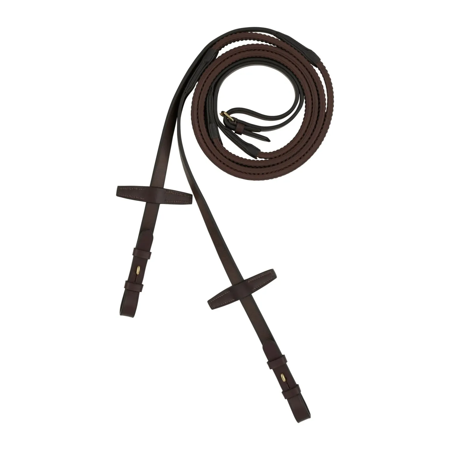 Die Horze Muswell Zügel sind aus Leder gefertigt und mit Gummi verstärkt, und dadurch einfach zu halten. Befestige sie an einer Trense und du kannst loslegen!
