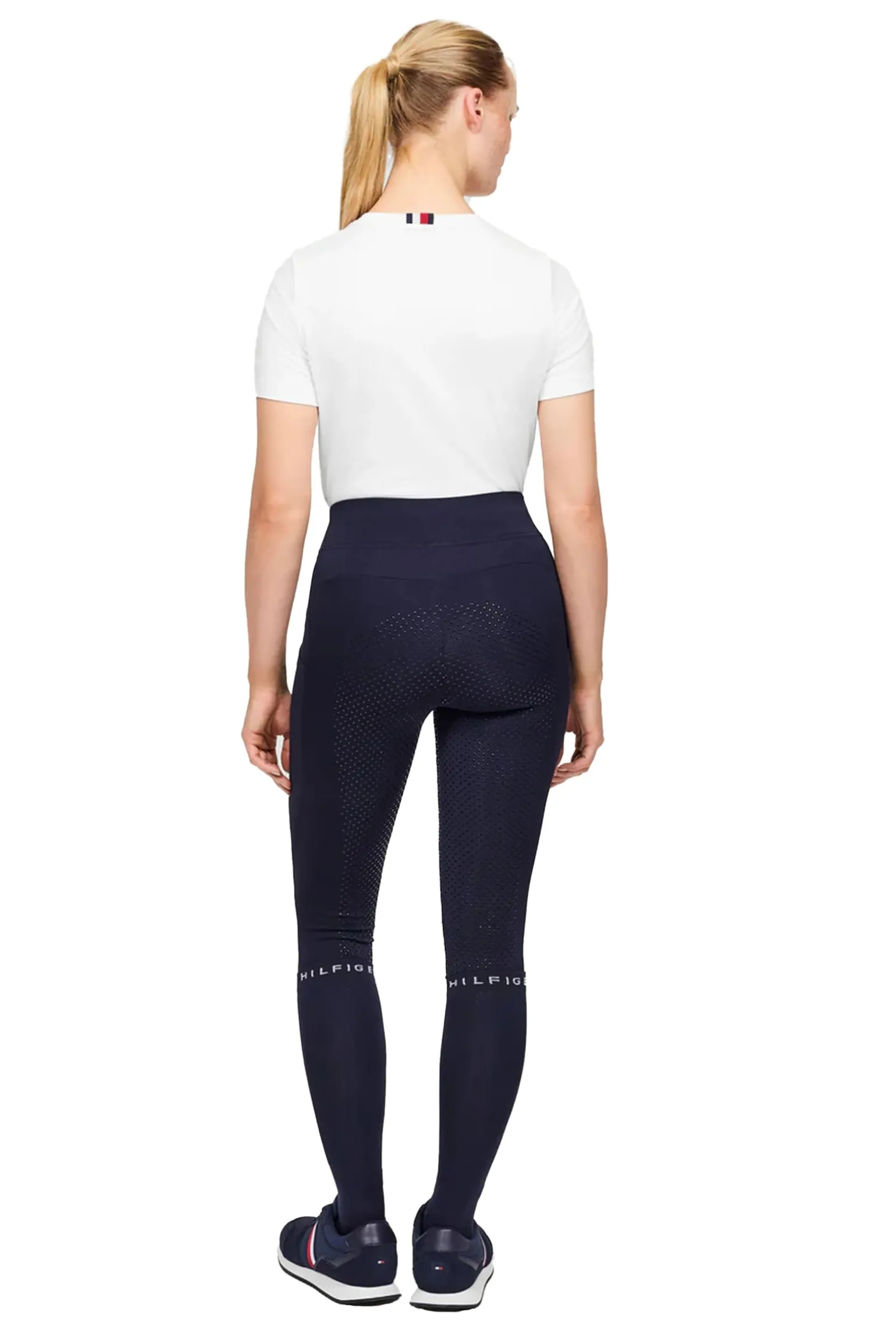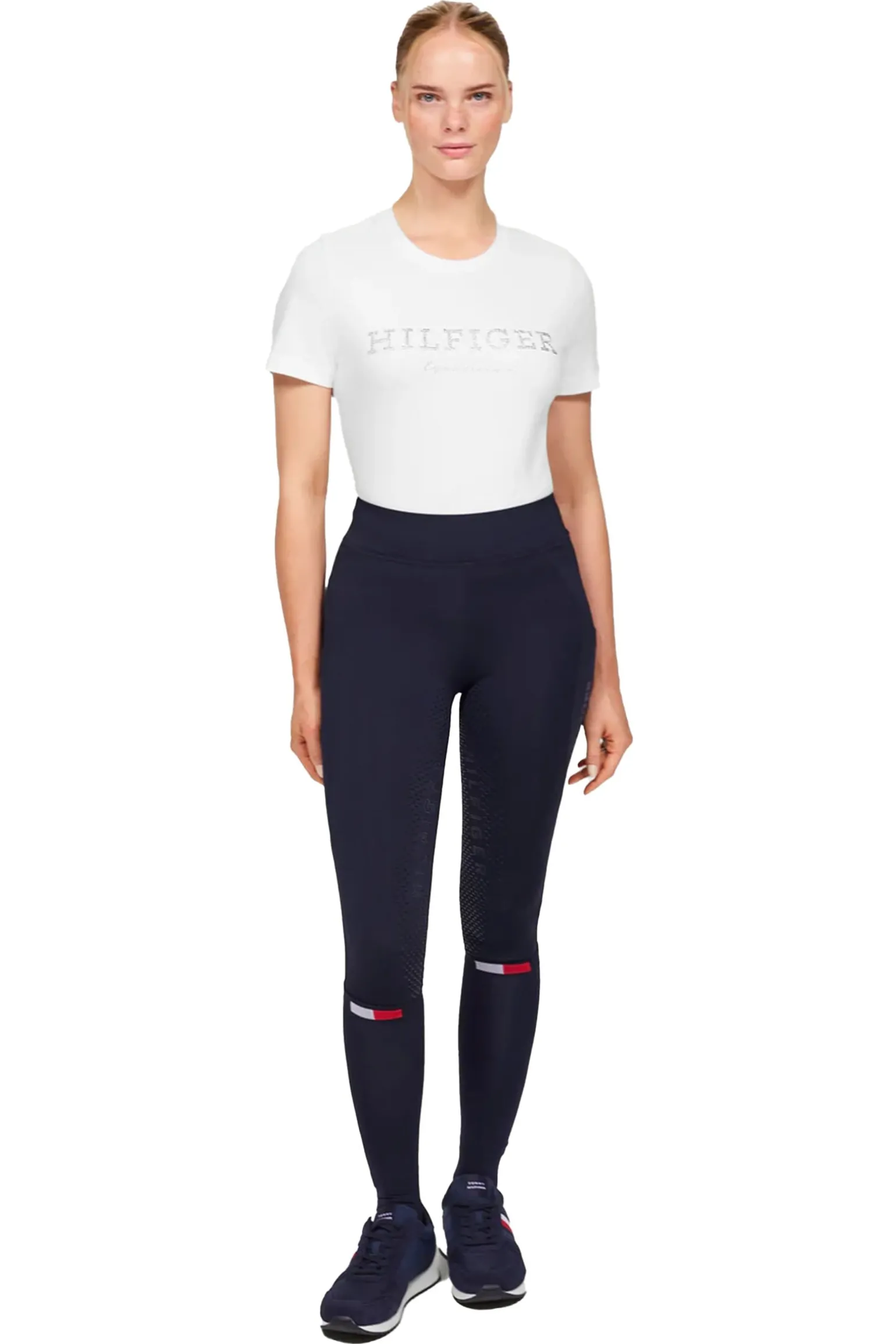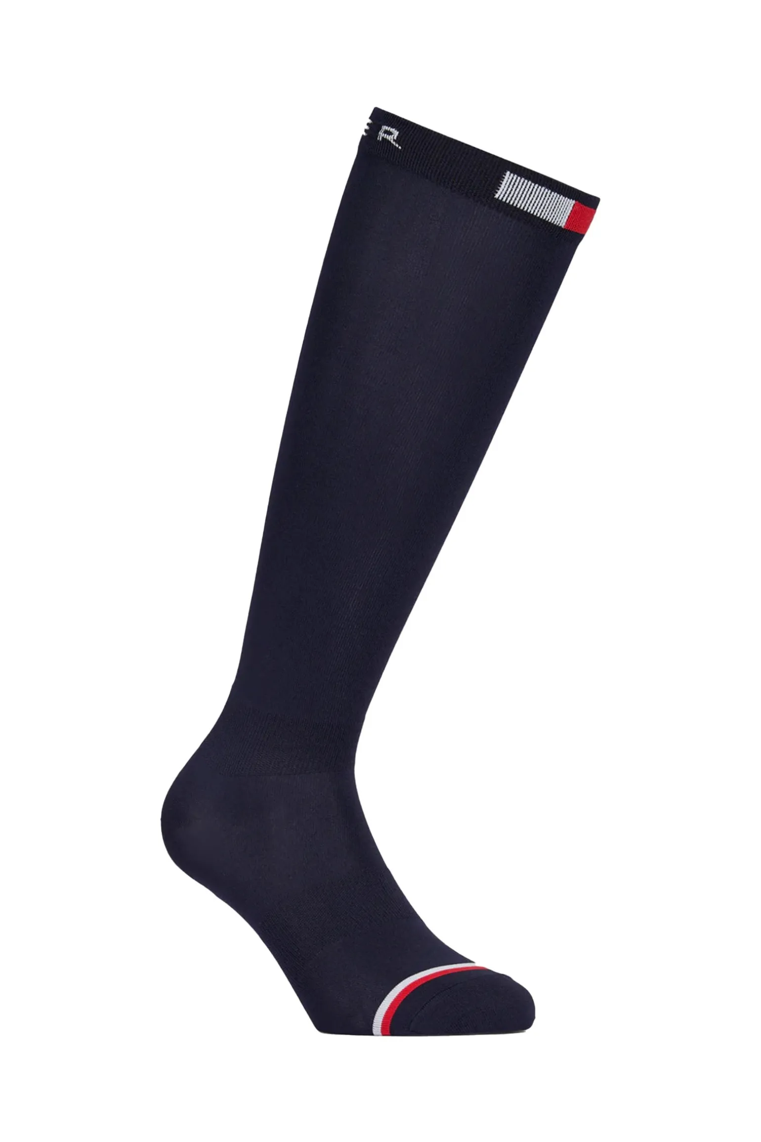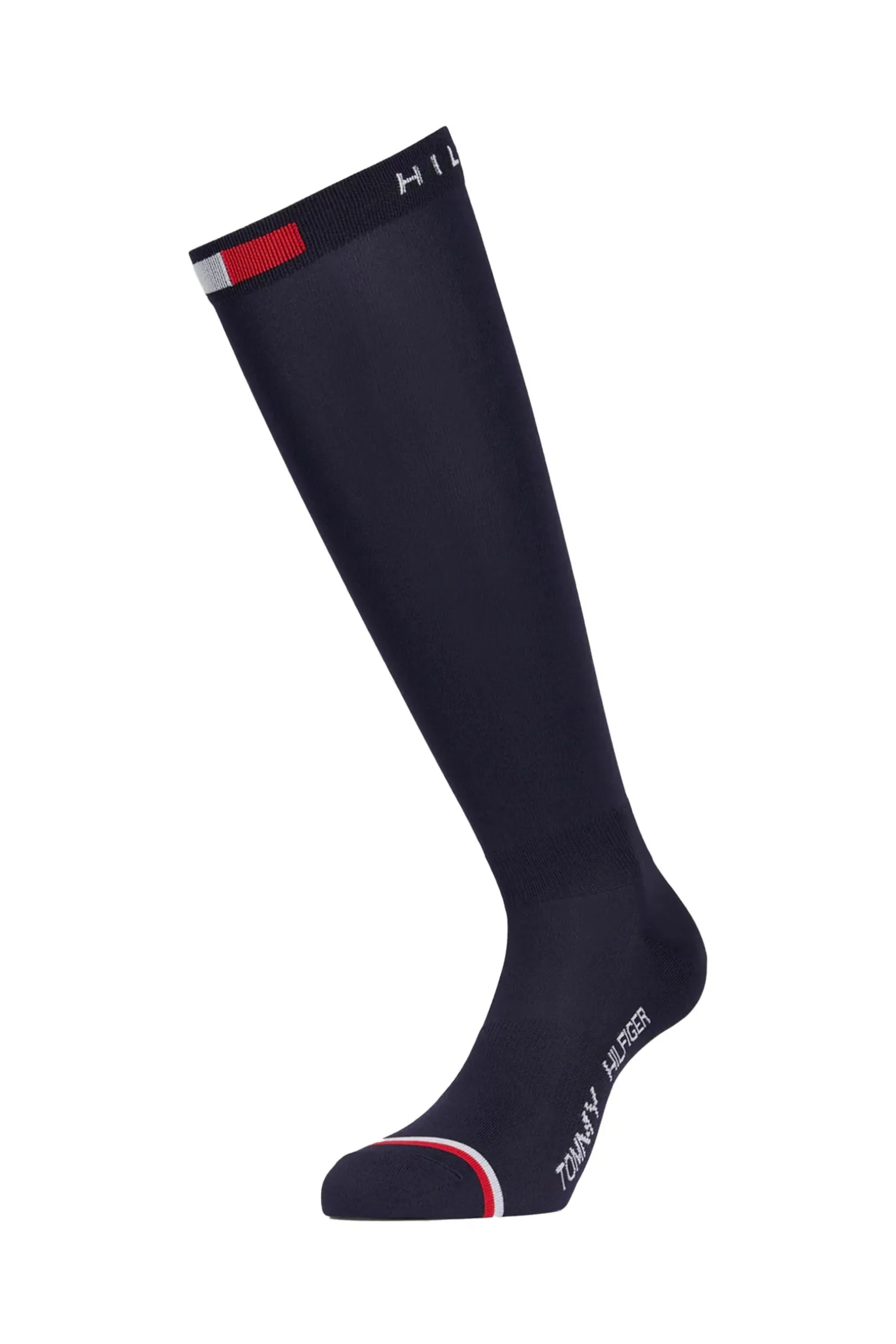 Tommy Hilfigers lange Reitsocken bieten Kompressionsstrumpf-Qualität, verstärkte Bereiche und das legendäre Tommy Hilfiger-Branding im Fußgewölbe.
