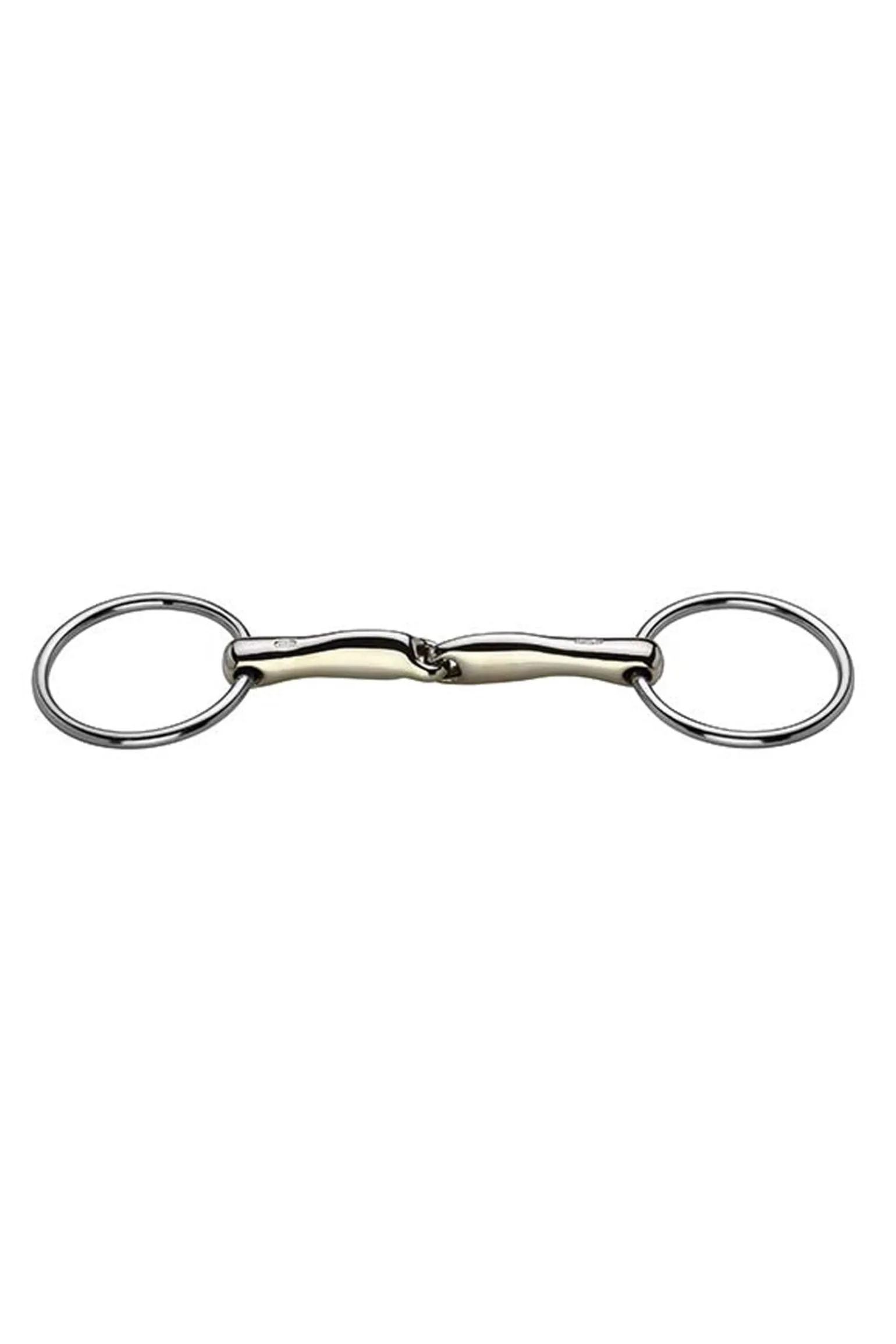 Mundstück: einfach gebrochen. Material: Sensogan mit Edelstahlseiten. Gebissstärke: 16 mm. Ringdurchmesser: 70 mm. Gebissringart: Wassertrense.