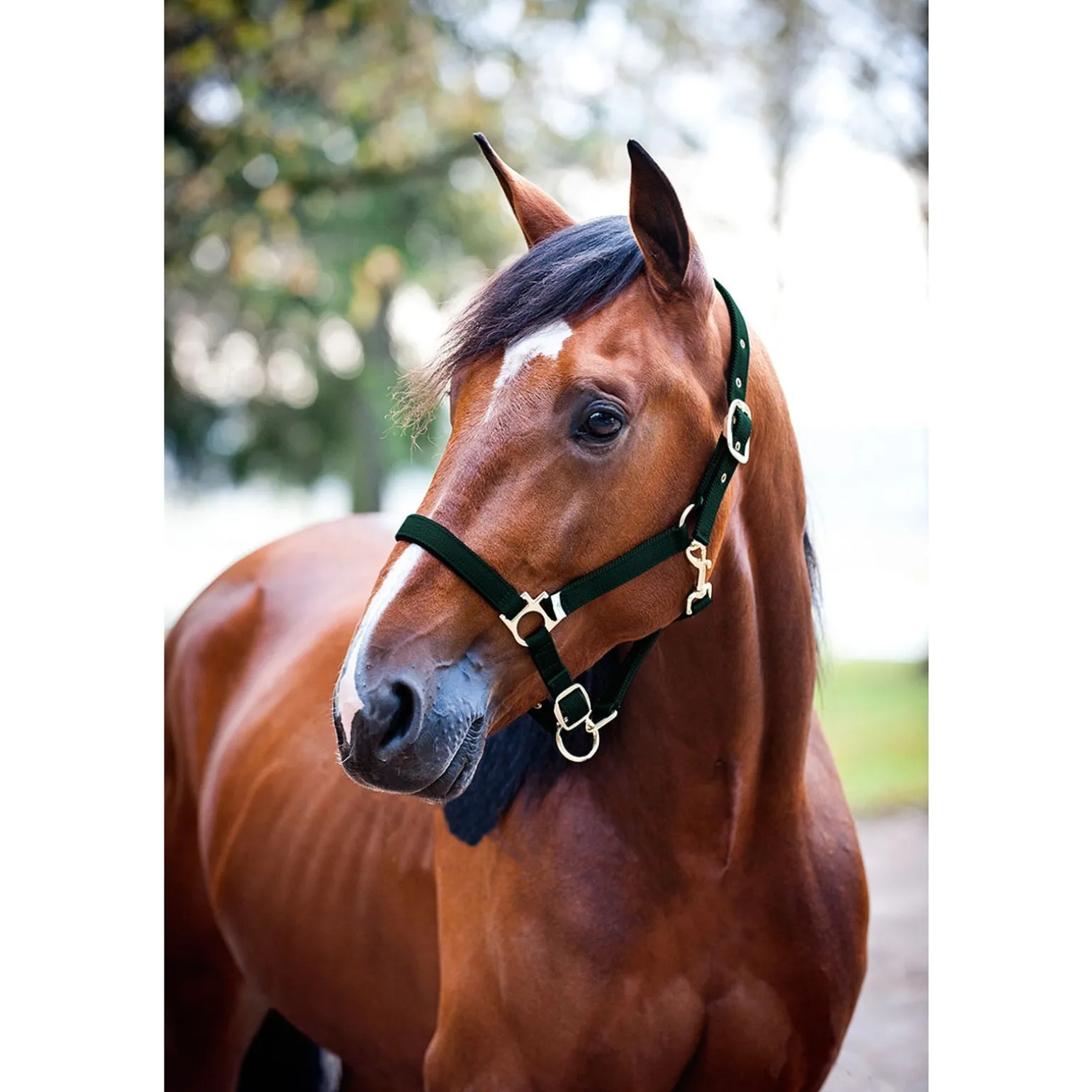 Nylon Halfter, am Genickriemen und am Nasenriemen verstellbar. Der Gaumenriemen hat einen Karabinerhaken. Genickriemen und Nasenriemen haben eine Samt-Polsterung.