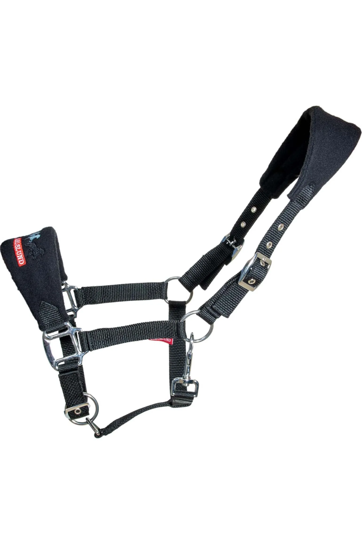 Wunderschönes Nylonhalfter mit weichem Fleecefutter an Nase und Genick sowie Verstellung um die Nase und auf beiden Seiten des Genicks. Auf dem Nasenstück befinden sich töltende Isländer.