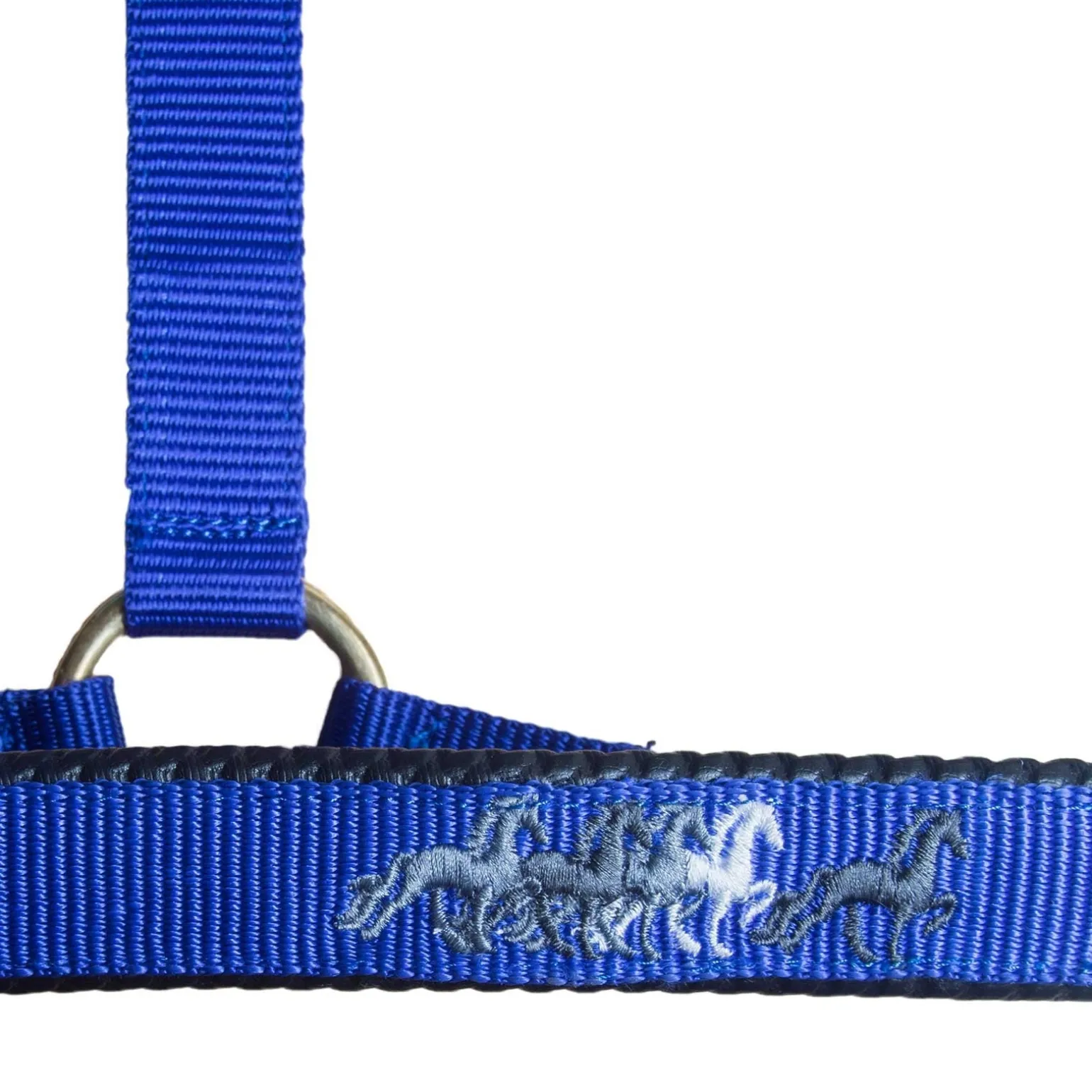 Nylonhalfter mit weicher Polsterung und einem gestickten Pferdemotiv eines Isländers.