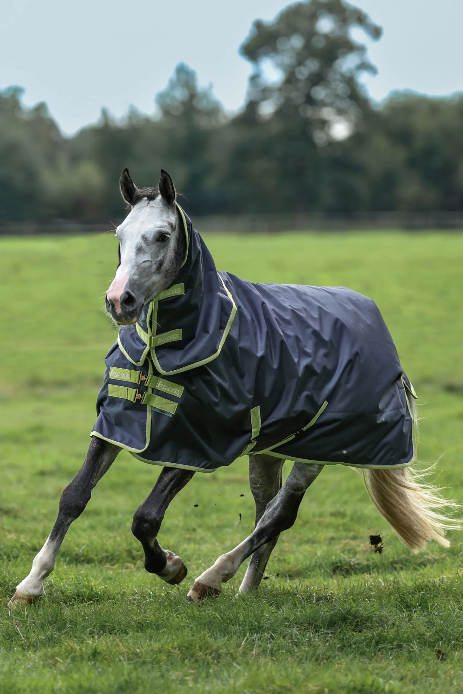 Die Oasis Turnout-Serie ist eine hervorragende Wahl, sowohl was Preis-Leistung als auch Komfort angeht. Diese Decke ist ideal für den Übergang und bietet deinem Pferd außergewöhnlichen Komfort und Schutz. Die Oasis verfügt über das Bucas Dermo-care Futter, das dabei hilft, das Fell glatt und weich zu halten, während es Feuchtigkeit von der Haut deines Pferdes ableitet. Das starke 900D Ripstop-Material schützt dein Pferd vor dem Wetter. Ein weiteres Merkmal der Oasis-Reihe ist der doppelte T-Verschluss an der Front, der das magnetische Snap-lock-System von Bucas beinhaltet, wodurch der Einsatz von Klettverschlüssen überflüssig wird, um die Decke sicher zu halten. Die Oasis Turnout ist die ideale Decke für dein Pferd und wird als Set mit einem Halsteil mit 50g Füllung verkauft, das deinem Pferd Schutz von den Ohren bis zum Schweif bietet.