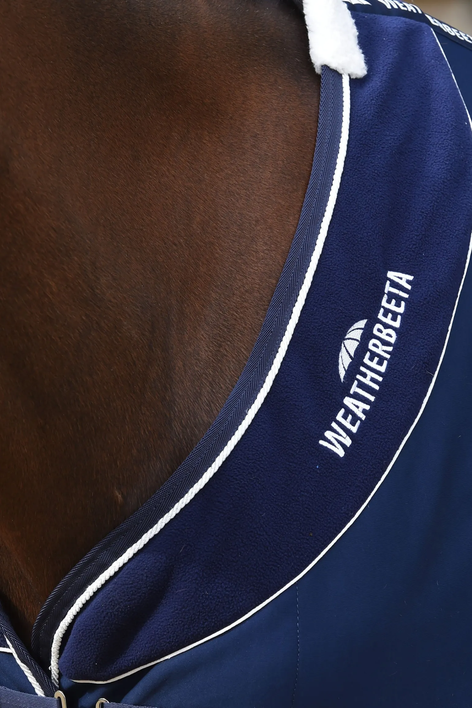 Die WeatherBeeta Opulence Decke mit Standardhalsausschnitt ist eine Turnierdecke, die nicht nur gut aussieht, sondern auch dafür sorgt, dass dein Pferd sauber, ordentlich und warm bleibt. Diese hochwertige Turnierdecke hat ein Fleece-Futter für mehr Komfort, während der äußere Stoff Schmutz und Heu abweist, damit die Decke bei Turnieren immer sauber bleibt. Der stilvolle Fleecekragen mit kontrastierenden Paspeln und dem gestickten WeatherBeeta-Logo am Halsausschnitt und am hinteren Teil gibt der Decke einen Hauch von Klasse. Diese Pferdedecke hat einen einfach verstellbaren Vordergurtverschluss mit Klettband, niedrige Kreuzgurte, Boa-Fleece am Widerrist für zusätzlichen Komfort und eine elastische PVC-Schweifkordel für einfache Reinigung.