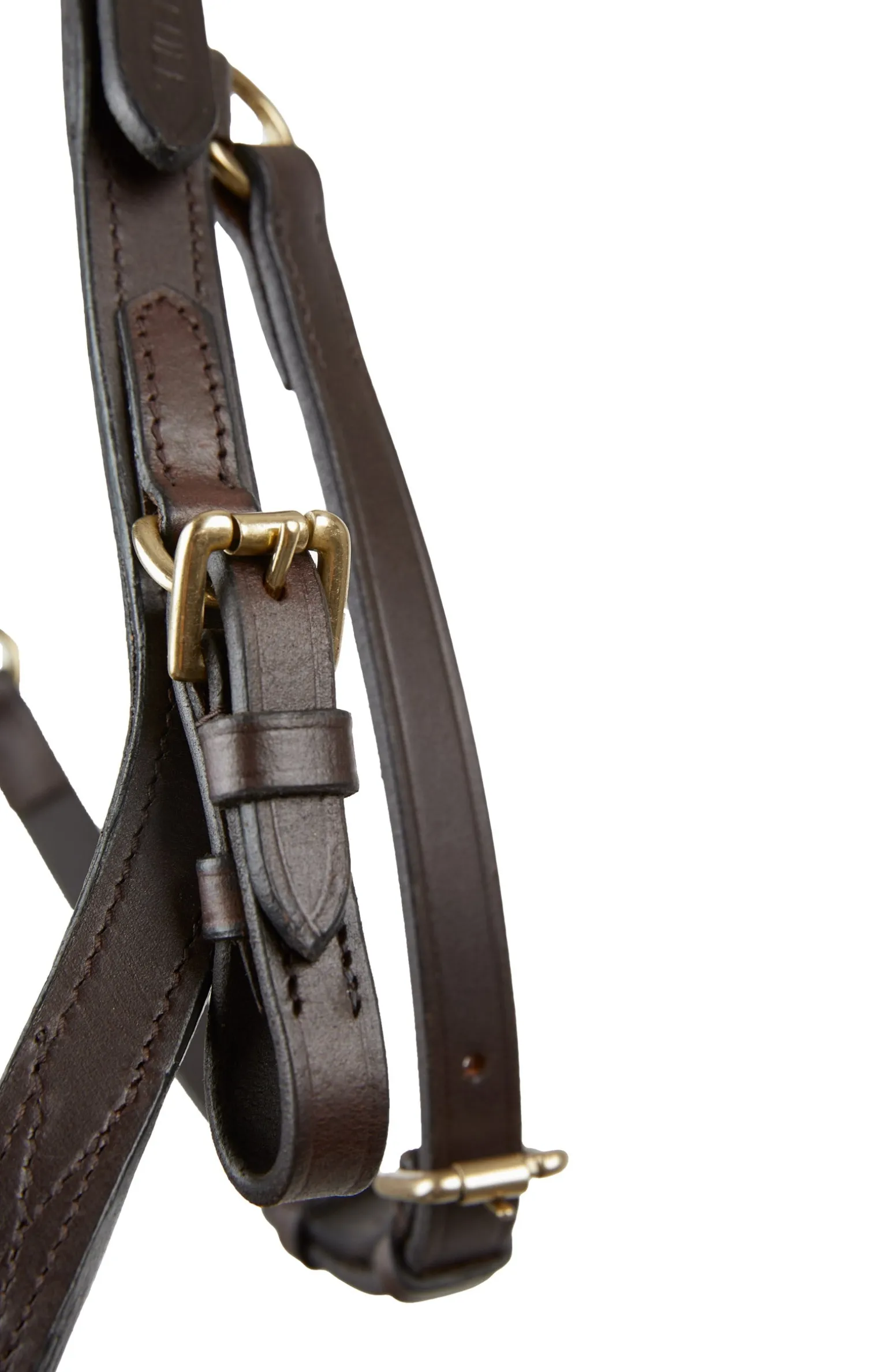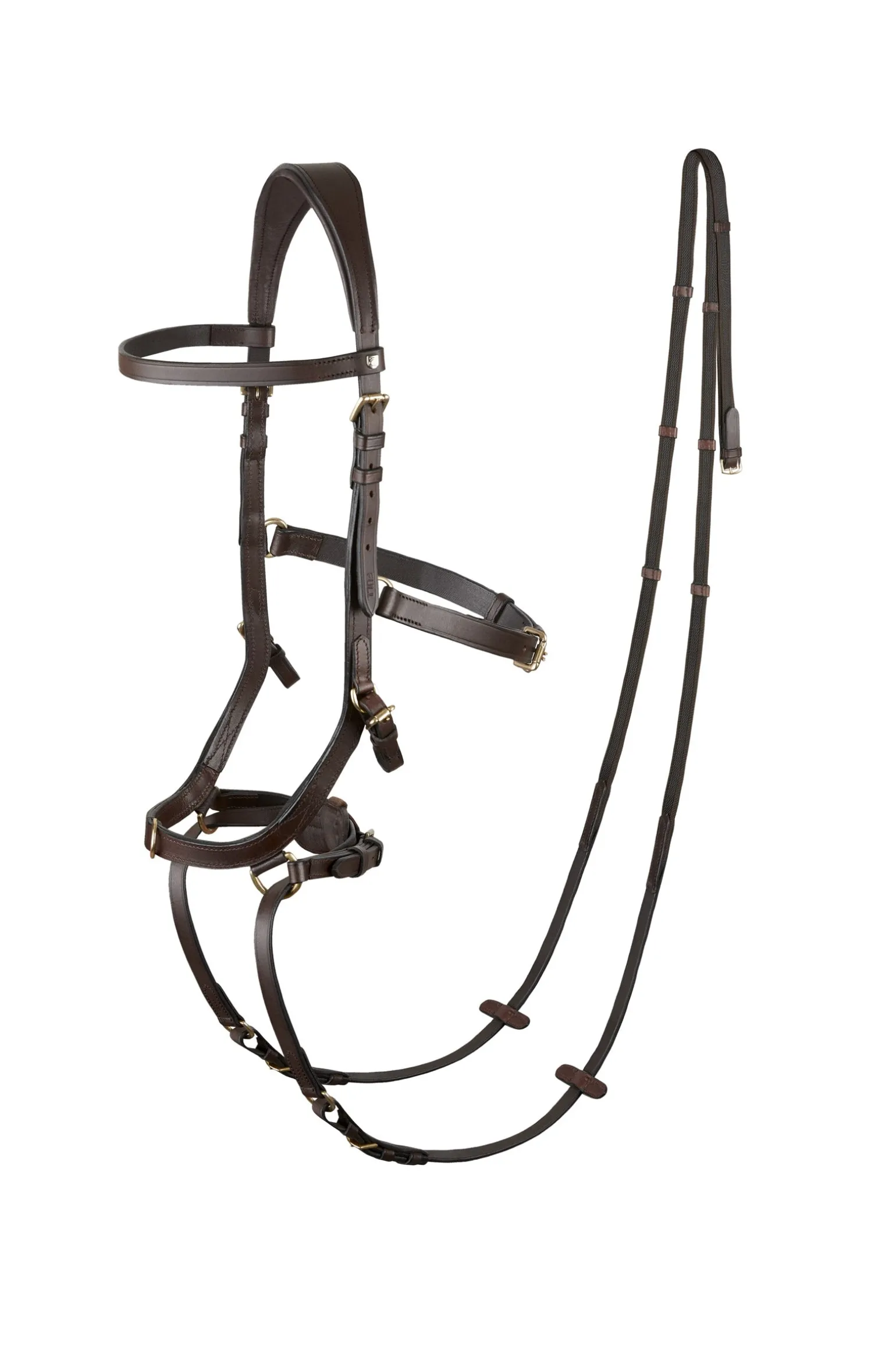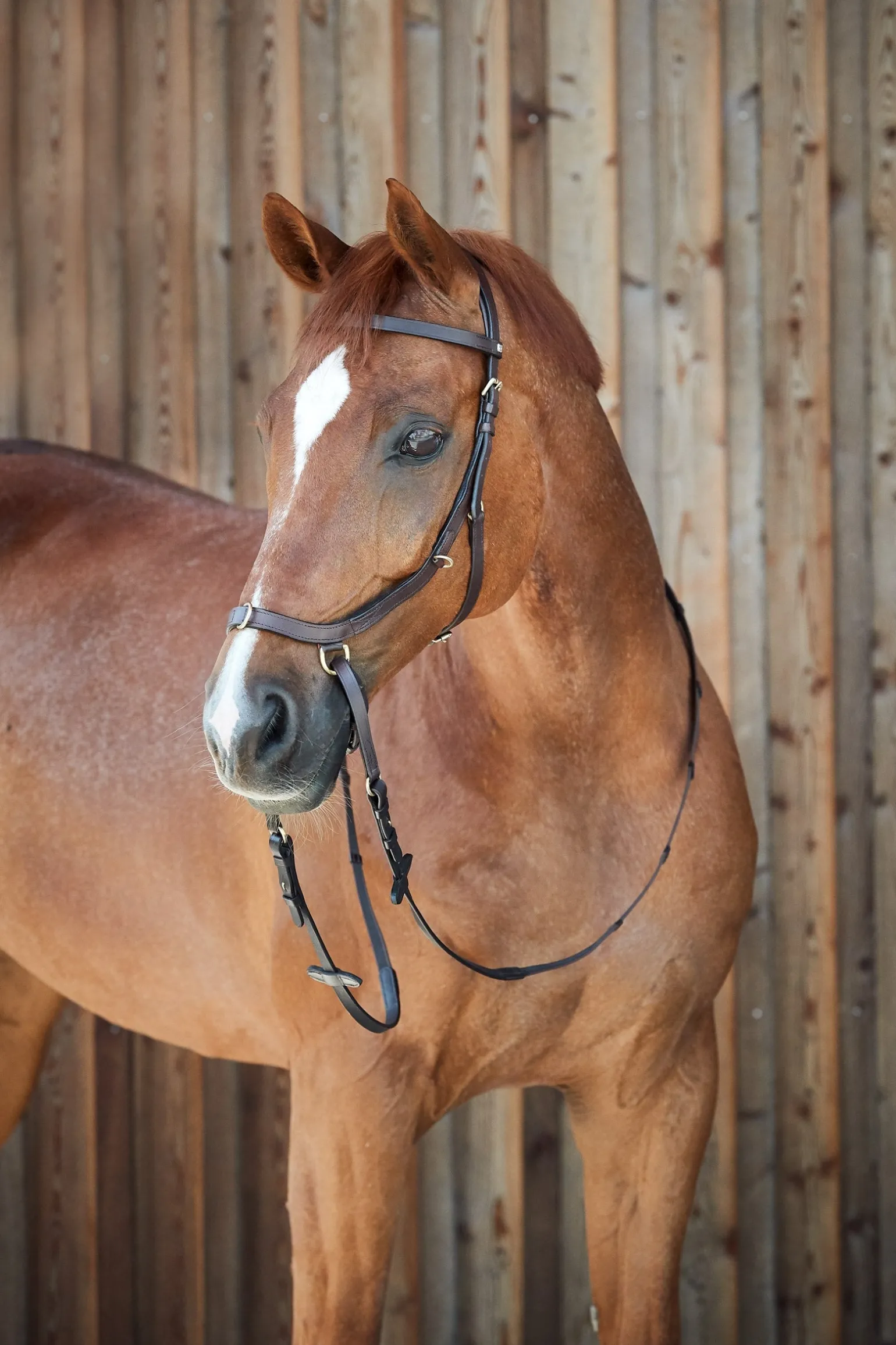 Die Horze Orlando Trense ist eine kombinierte Trense, die sowohl gebisslos als auch mit Gebiss verwendet werden kann. So hast du die Möglichkeit, verschiedene Reitweisen auszuprobieren und bei Bedarf zu wechseln. Die Trense besteht aus weichem, geöltem Pull-Up-Leder. Der anatomische Schnitt im Genick sorgt für Komfort. Die schönen goldenen Beschläge passen wunderbar zum warmen Braun des Leders. Die enthaltenen Gummizügel sind super praktisch und geben guten Halt. So kannst du sofort loslegen.