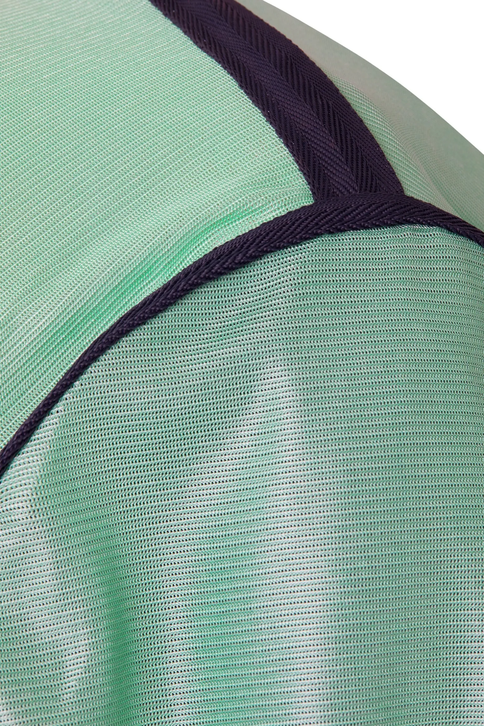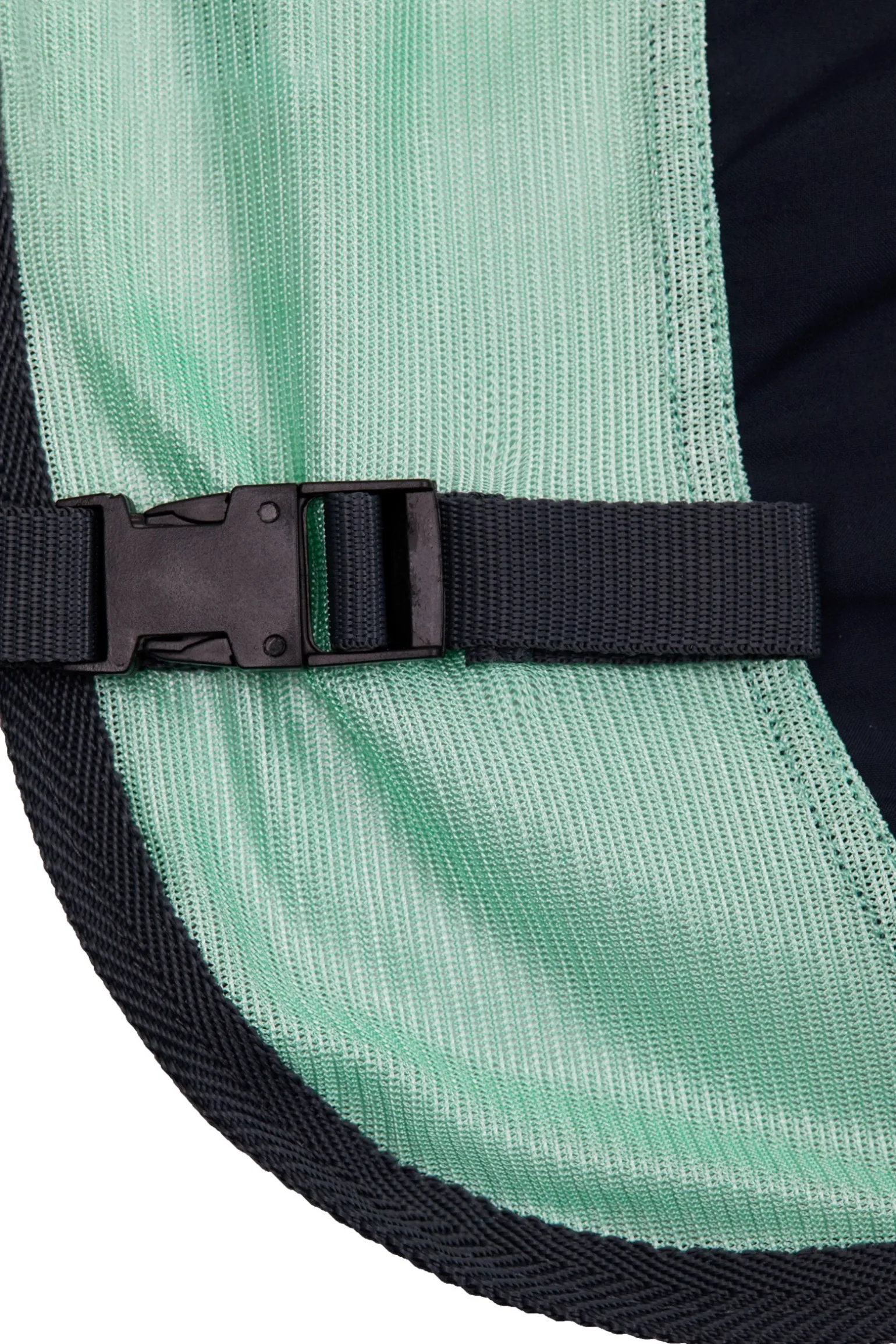 Die Paso Fino Fliegenausreitdecke ist die richtige Decke für dich, wenn du im Sommer in’s Gelände reiten möchtest. Dank des abnehmbaren Halsteils kannst du entscheiden, ob du sie mit oder ohne Halsteil verwenden möchtest. Der hintere Teil der Decke wird wie eine normale Ausreitdecke mit einem breiten Klettverschluss vor dem Sattel geschlossen und ist mit einem Schweifriemen versehen. Der große Schweiflatz sorgt für eine bessere Abdeckung. Der Teil, der unter dem Sattelblatt liegt, ist aus glattem Polyester gefertigt, um den Sattel nicht zu beschädigen. Wenn du dich für das Halsteil entscheidest, kannst du es einfach mit Klettverschlüssen am hinteren Teil befestigen. Die Mähne und der Brustbereich sind mit glattem Polyester gefüttert, um Scheuerstellen zu vermeiden. Das Halsteil wird mit einem Klettverschluss geschlossen. Abgerundet wird der Style durch ein Logotape entlang des Rückens.