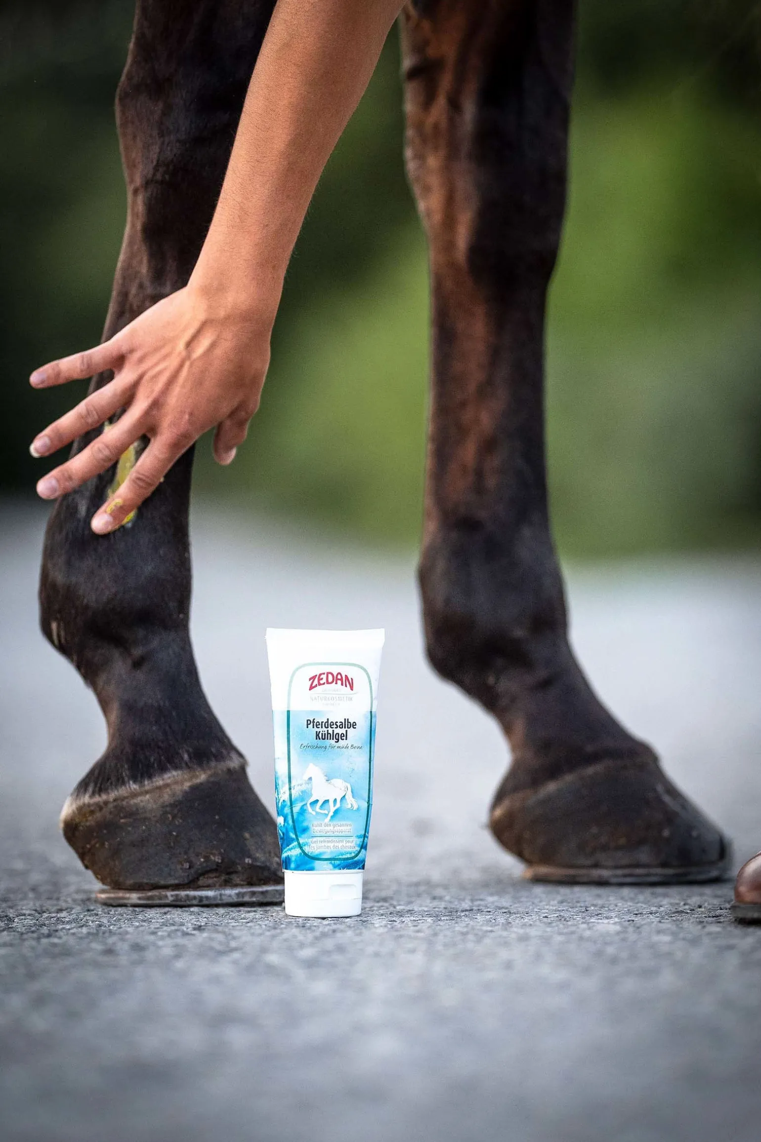 Gönne deinem Pferd nach der Arbeit eine wohltuende Massage mit der Zedan Pferdesalbe. Entspannt bei Belastungsbeschwerden. Wohltuend bei müden Muskeln und Muskelkater. Dieser entspannende Effekt wirkt sich auf den gesamten Bewegungsapparat aus. Eukalyptus-Öl wird traditionell bei Gelenkbeschwerden angewendet. Cajeput-Öl fördert die Durchblutung. Ackerminz-Öl, Gewürznelken-Öl und Menthol verleihen eine angenehme Frische. Wirksame Pflegerezepturen mit ökologischem Mehrwert aus Verantwortung für Tier, Mensch und unsere Umwelt.