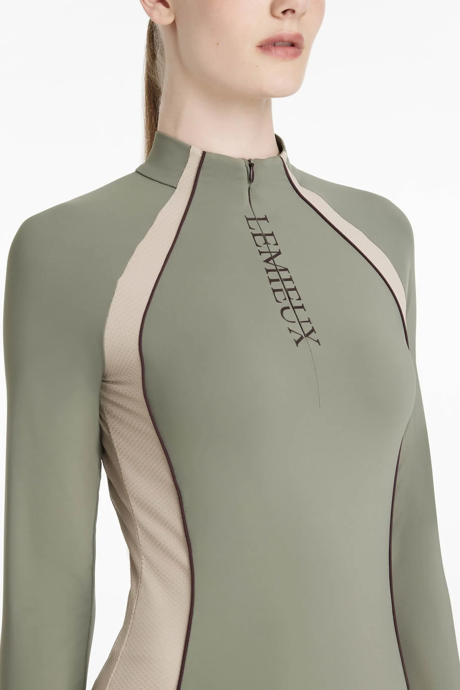Dieser markante Base Layer aus funktionellem Vier-Wege-Stretch mit LSF 50+ verleiht dir einen stylishen Look. Er eignet sich ideal für heiße Temperaturen und verfügt über schweißableitende Mesheinsätze für eine gute Belüftung. Die kontrastierenden Einsätze sorgen für einen eleganten Look und schmeicheln der Figur. Das auffällige vertikale LeMieux Branding in Kontrastfarbe befindet sich über dem 1/4-Reißverschluss.