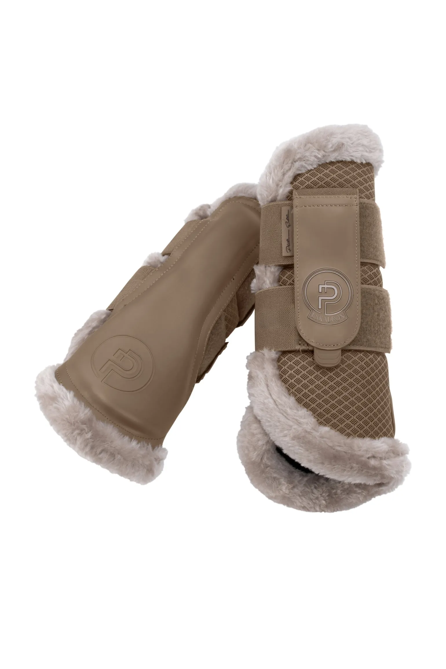 Diese Schlagschutzstiefel verfügen über ein atmungsaktives, mehrlagiges Netz mit einem weichen Kunstfell-Bindeband für maximalen Komfort. Die verbesserte Passform sorgt für optimalen Halt, während die Dämpfungs- und Druckverteilungs-Eigenschaften die Beine Ihres Pferdes während des Trainings schützen. Die robuste Innenzone mit PU-Einlage und Platinum-Prägung verleiht Haltbarkeit und Stil. Der elastische Klettverschluss, bedeckt mit Softslate und verziert mit Lurex-Streifen und Platinum-Emblem, bietet sowohl einen sicheren Halt als auch einen Hauch von Eleganz. Pflegeleicht und waschbar bieten diese Stiefel sowohl Funktionalität als auch Komfort.