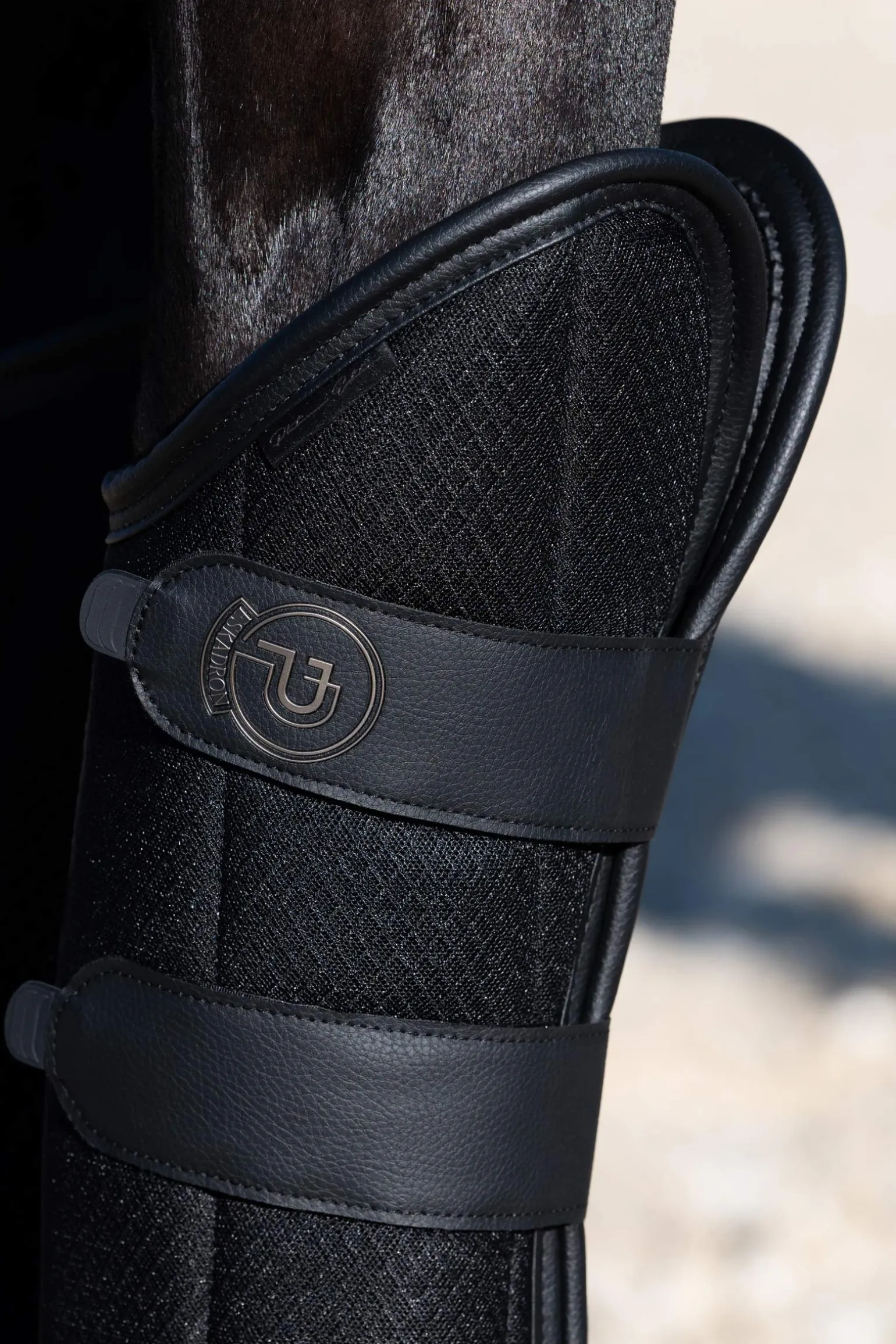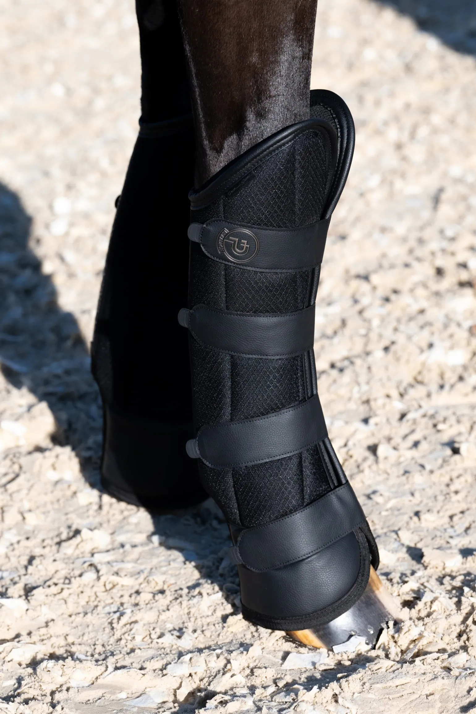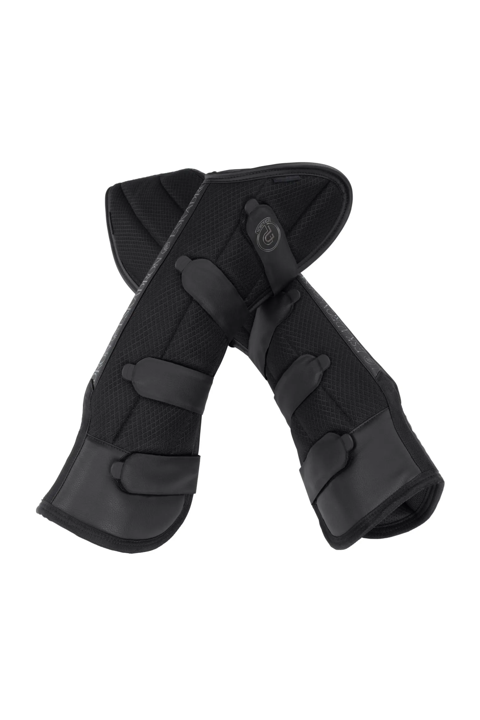 Ezek a szállítószárak légáteresztő, többrétegű hálóval vannak tervezve, hogy biztosítsák a maximális kényelmet lovad számára. A szárak optimális nyomáselosztást és párnázást biztosítanak, hogy megvédjék lovad lábait utazás közben. Műbőr borítású tépőzárak, Platinum emblémával díszítve, biztosítják a stabil illeszkedést. A tartós műbőr megerősítés az alsó részen elöl és hátul növeli a tartósságot, míg az erős szegés biztosítja a hosszú élettartamot. Dekoratív betűnyomással díszítve, ezek a szárak könnyen karbantarthatók és moshatók, így kényelmesek.