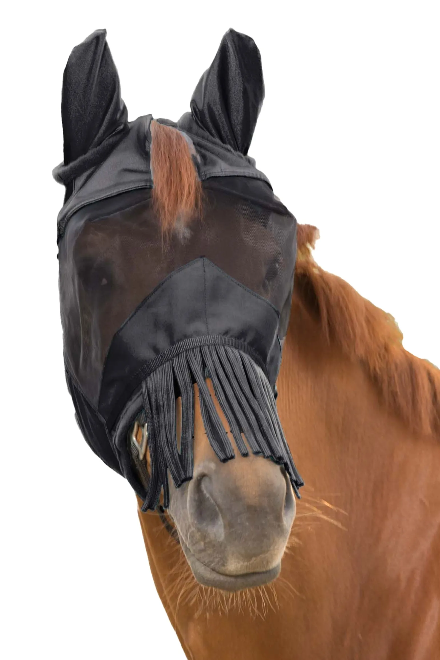 Der ideale 3 in 1 Schutz vor lästigen Insekten. Ein Reißverschluss ermöglicht ein schnelles und einfaches Wechseln des Nasenschutzes. So kann die Maske ganz ohne Nasenschutz, mit Nasenschutz oder mit Fliegenfransen getragen werden. Mit Schopföffnung