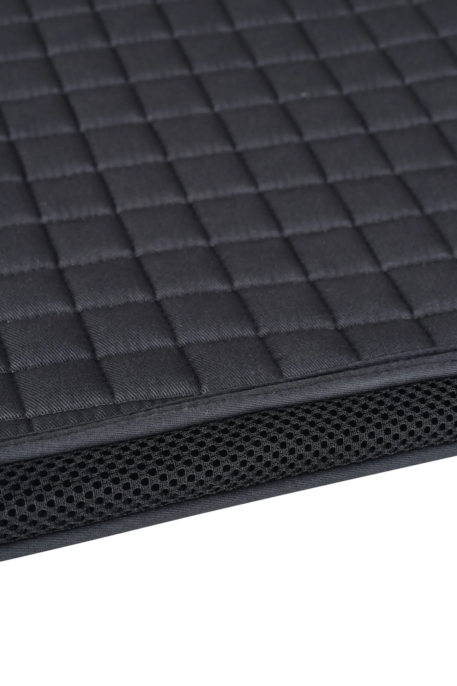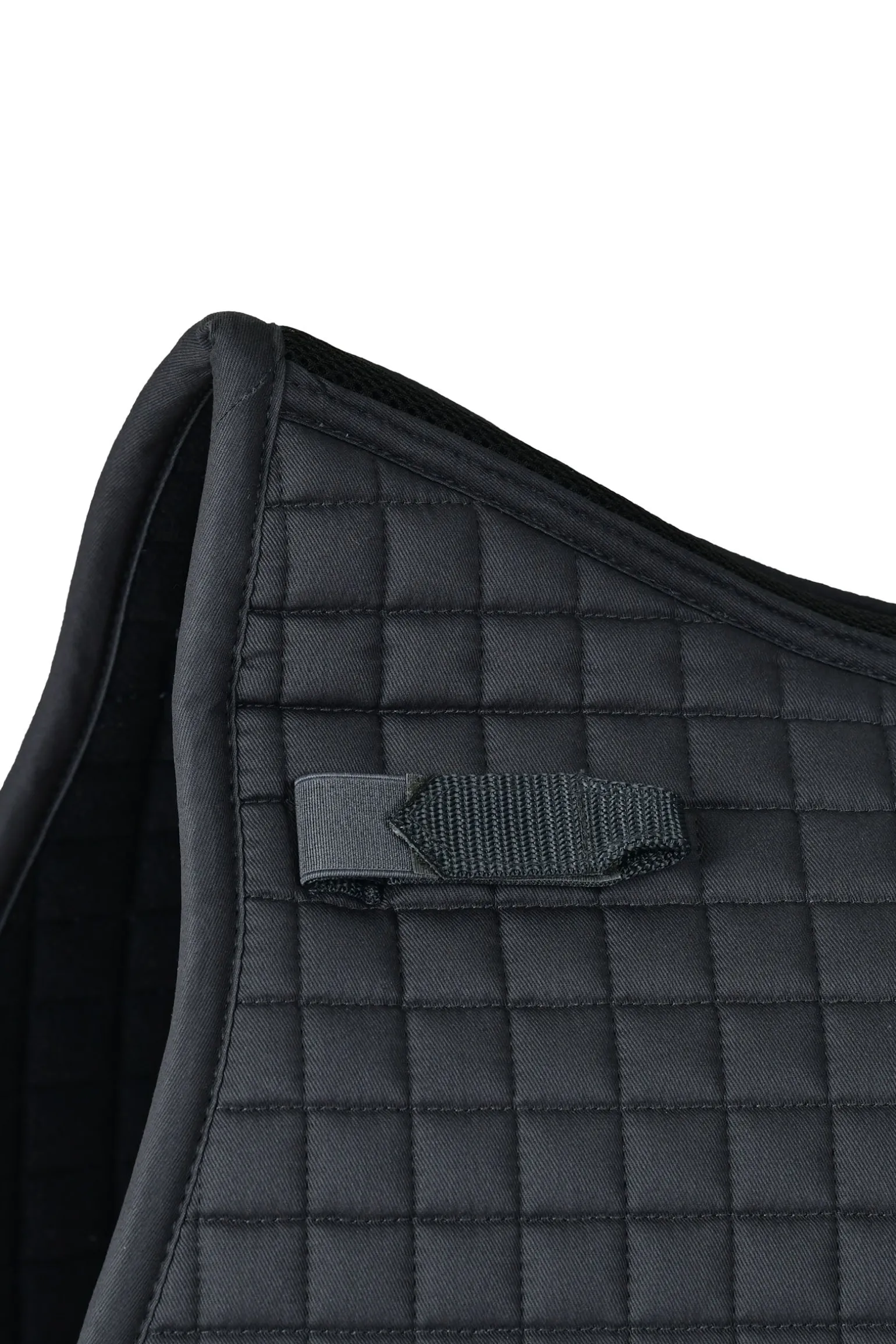 Diese Schabracke verfügt über ein atmungsaktives und strapazierfähiges vorgewaschenes Obermaterial aus 100 % Baumwolle mit reibungsfreier Einfassung für eine glatte, bequeme Passform. Die weiche wick-easy Unterfütterung trocknet schnell und sorgt für ultimativen Komfort unter dem Sattel. Die renommierte Air-Tec Mesh-Rückenspalte bietet eine überlegene Atmungsaktivität, während das hohe Widerristdesign für ausreichend Freiraum sorgt, um Reibung zu vermeiden. Elastische, gewebte D-Ring-Gurte und gewebte Gurtaufnahmen sichern das Pad zusätzlich, und die starke 1680 Denier Gurtpatch sorgt für dauerhafte Haltbarkeit.