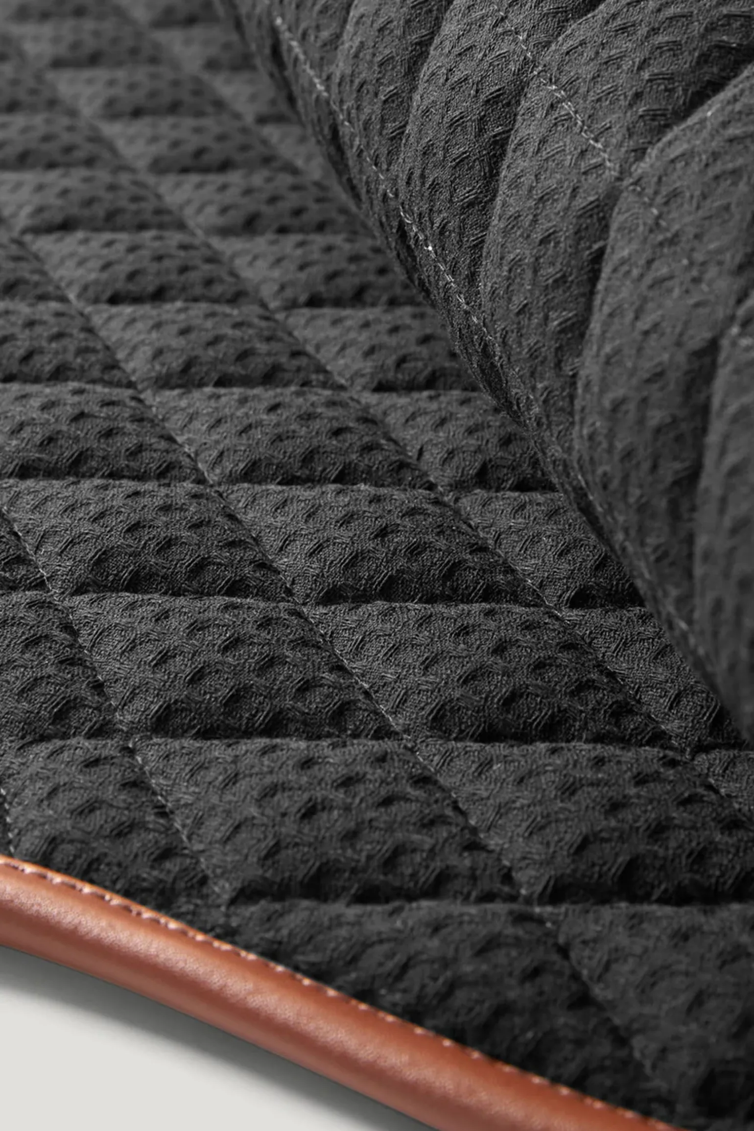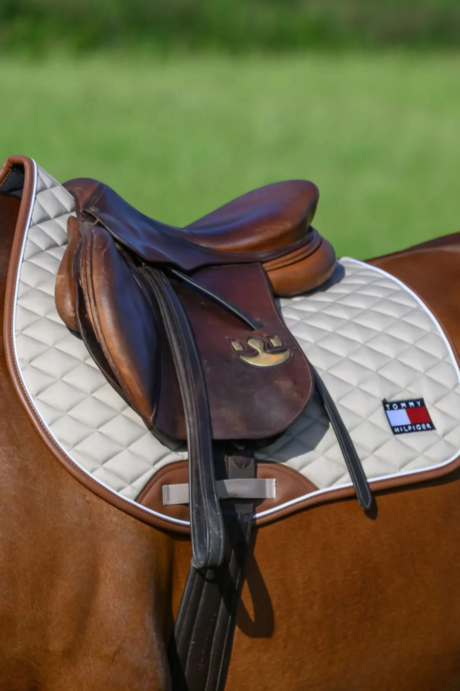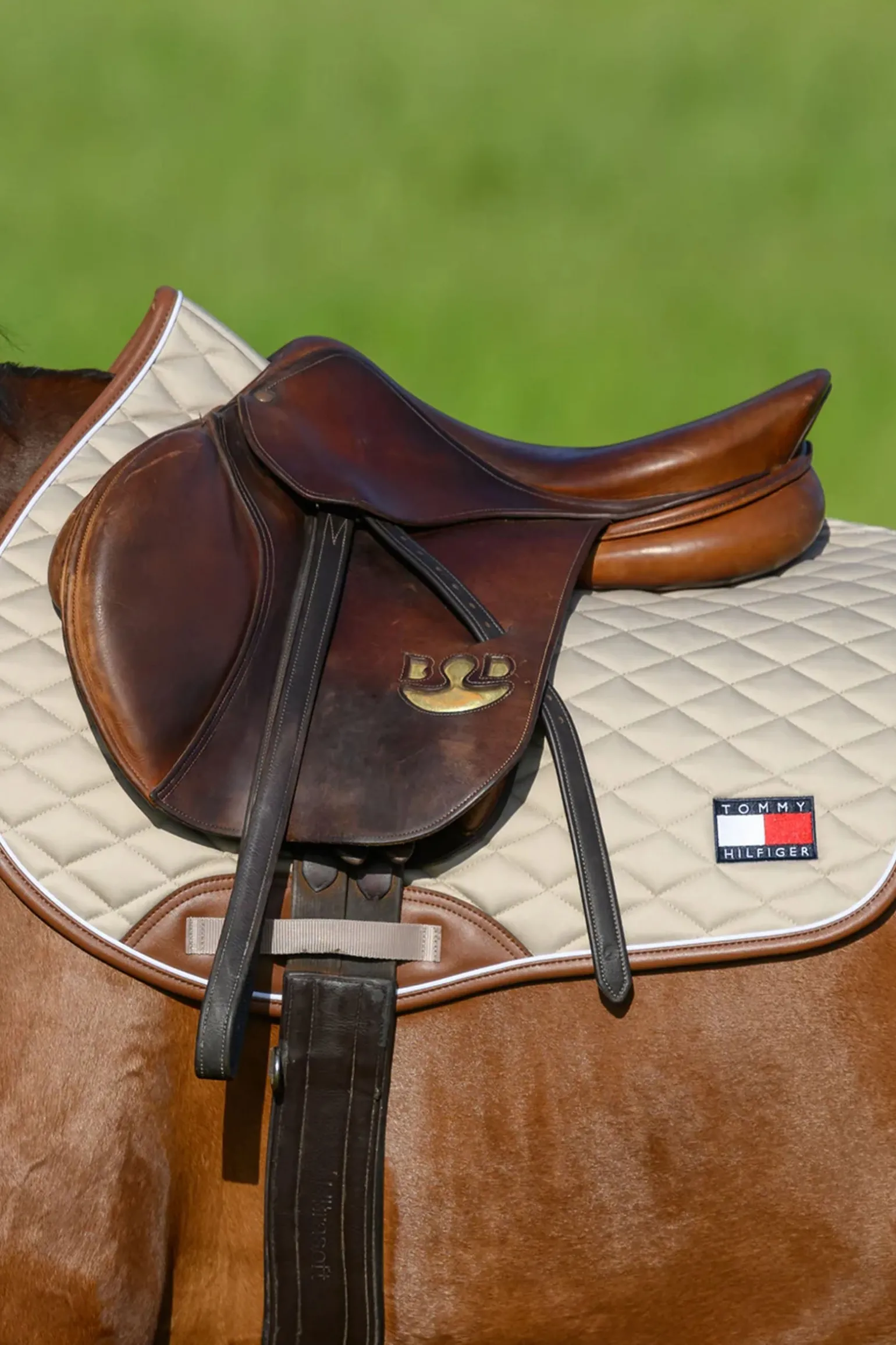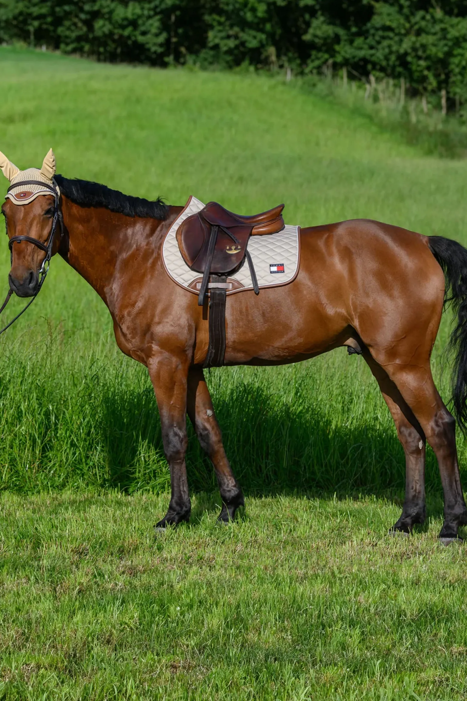 Die Tommy Hilfiger Equestrian Princeton Springschabracke bietet die perfekte Balance zwischen Stil und Performance. Mit einer edlen Kunstlederverzierung und klassischer Rautensteppung sorgt sie für einen eleganten und funktionalen Look. Das Tommy Hilfiger Logo auf beiden Seiten setzt einen markanten Akzent, während das waffelstrukturierte Innenfutter für Atmungsaktivität und Feuchtigkeitsregulierung sorgt. Hergestellt aus veganem Material, garantiert diese Schabracke Komfort und Nachhaltigkeit bei jedem Ritt.