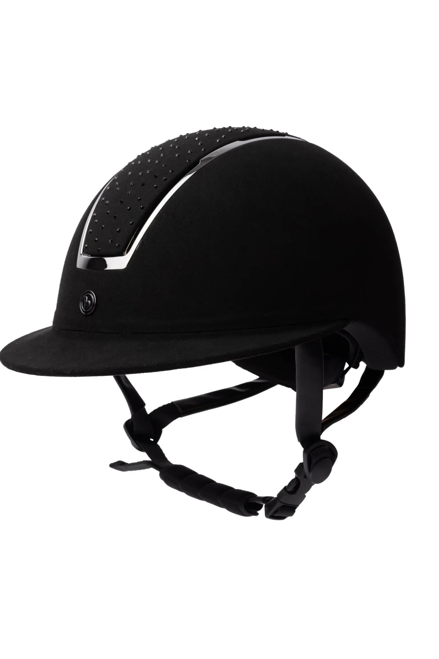 Der Horze RADIANT Reithelm entspricht der VG1-Norm und bietet weitere zusätzliches Extras. Die Lüftungsöffnungen vorne, oben und hinten sorgen für hervorragende Luftzirkulation, so kannst du dich entspannen und auf die wichtigen Dinge konzentrieren, ohne dich um deinen Kopf sorgen zu müssen. Das besonders breite Visier schützt deine Augen und verhindert, dass du von der Sonne geblendet wirst. Das Innenfutter aus Memory-Schaum passt sich an die Konturen deines Kopfes an und sorgt für noch mehr Tragekomfort. Die inneren Befestigungen sind mit einem Drehrädchen einstellbar, für die perfekte Passform und um Rutschen zu verhindern. Der Kinnriemen ist als zusätzlicher Halsschutz konzipiert und gepolstert, für sicheren und bequemen Sitz. Eine weitere Raffinesse ist die Schnellverschluss-Schnalle. Das attraktive Design mit den auffälligen Kristallen verleiht dir Eleganz.