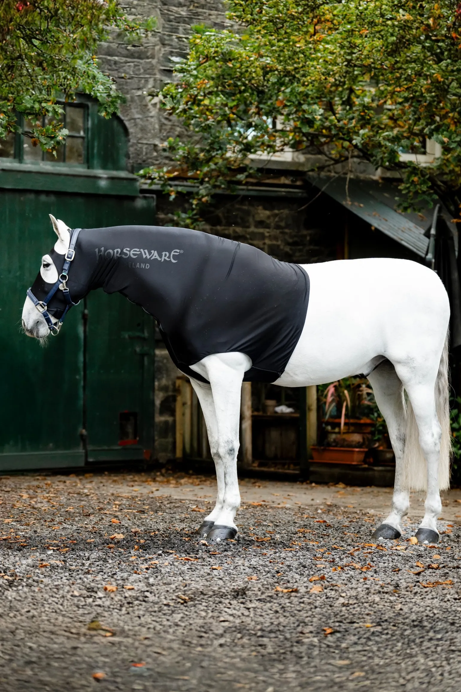 Die Rambo® Slinky Hood ist atmungsaktiv und elastisch und hat die perfekte Passform, um Kopf und Hals des Pferdes effektiv zu schützen. Das Halsteil ist aus einer glatten Nylon-Elasthan-Mischung mit antistatischer Ausrüstung gefertigt, glättet das Fell, schützt vor Staub und minimiert Reibung.