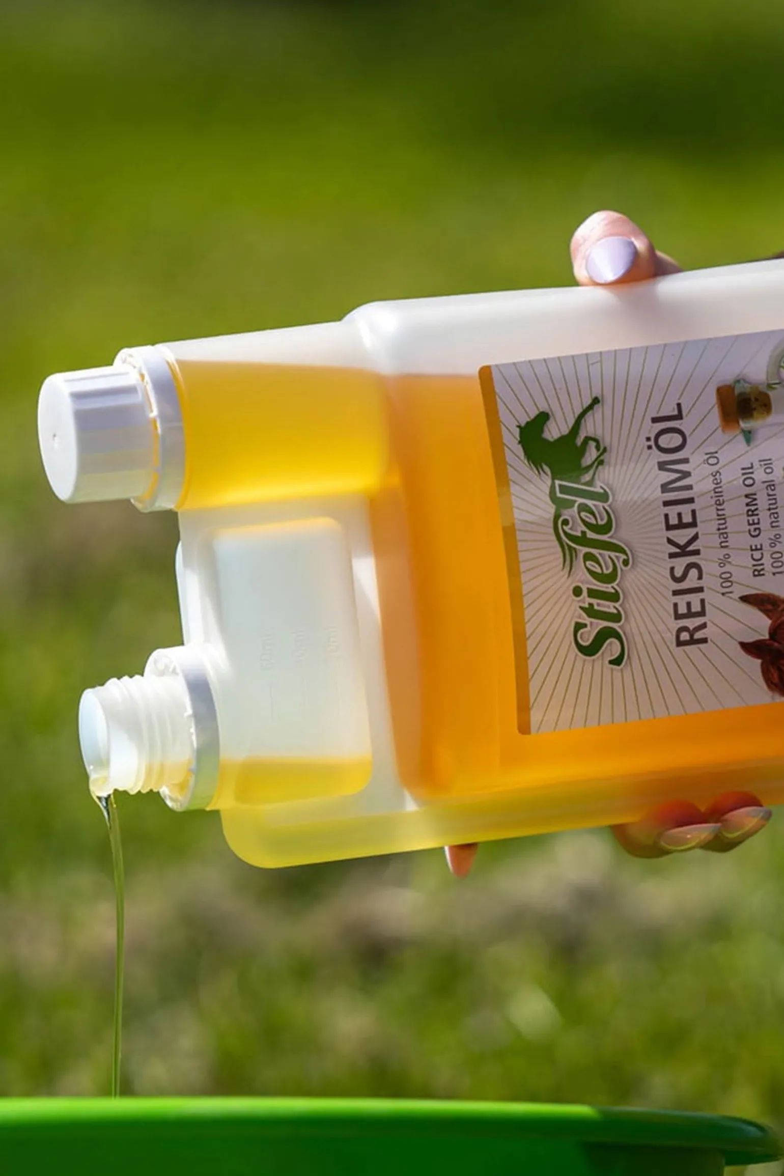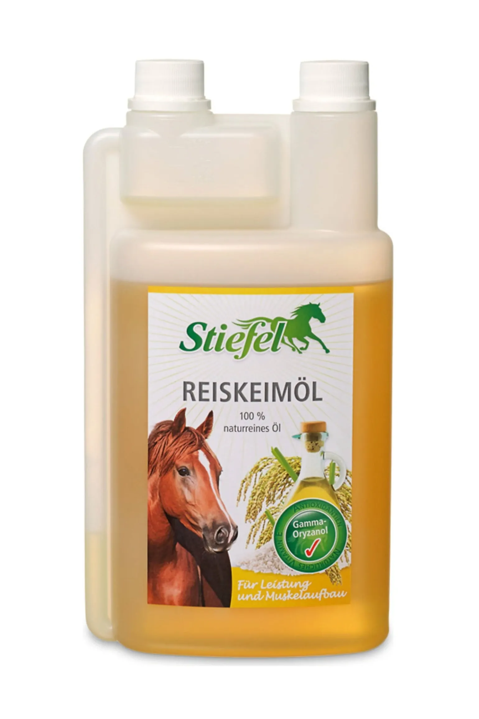 Stiefel Reiskeimöl enthält natürliches Gamma-Oryzanol zur Unterstützung im Muskelaufbau und zur Steigerung der Leistungsbereitschaft. Das hochwertige, 100 % naturreine Öl stellt durch seine wertvollen Inhaltsstoffe eine sinnvolle Aufwertung der Futterration von Sportpferden dar. Fütterungshinweis: Großpferde (600 KGW) 25-50 ml / tägl., Kleinpferde 15-30 ml / tägl. Dosierung kann im Bedarfsfall verdoppelt werden.