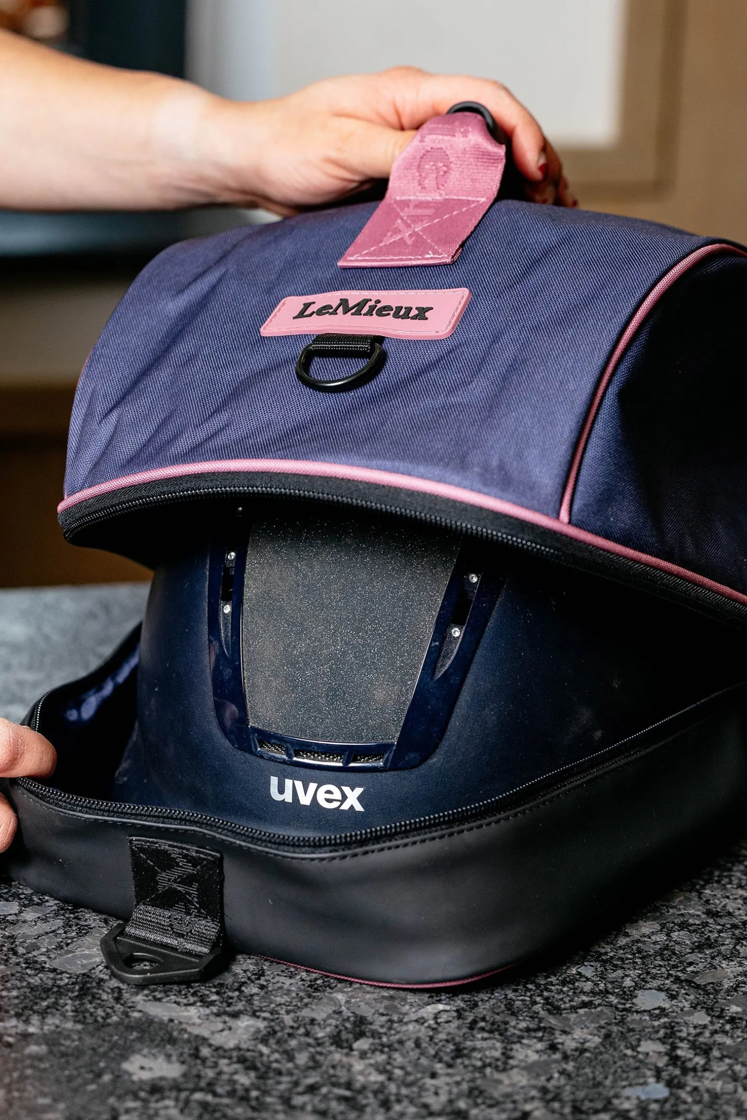 Die leicht zu reinigende, strapazierfähige Hutbox von LeMieux erleichtert das Verstauen und Tragen Ihres Turnier-Reithelms.