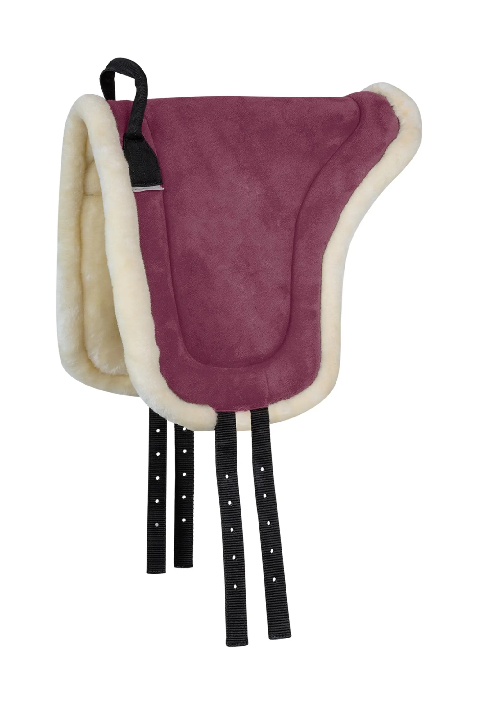 Weiches Reitpad mit einer Unterseite aus Kunstfell für hohen Komfort für Pferd und Reiter. Für einen besonders guten Halt beim Reiten sorgt ein Griff an der Vorderseite sowie ein griffiges Velourleder-Imitat.